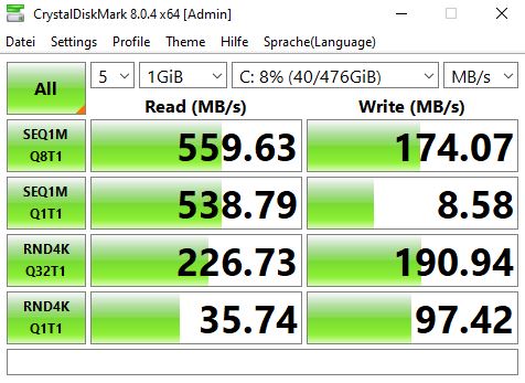 Windows neu installieren bringt auch keine Besserung und dauert für SSD Verhältnisse sehr lange, knapp eine Stunde vom Start des Setups bis zum Abschluss der Einrichtung bzw. das erste mal auf den Desktop kommen.