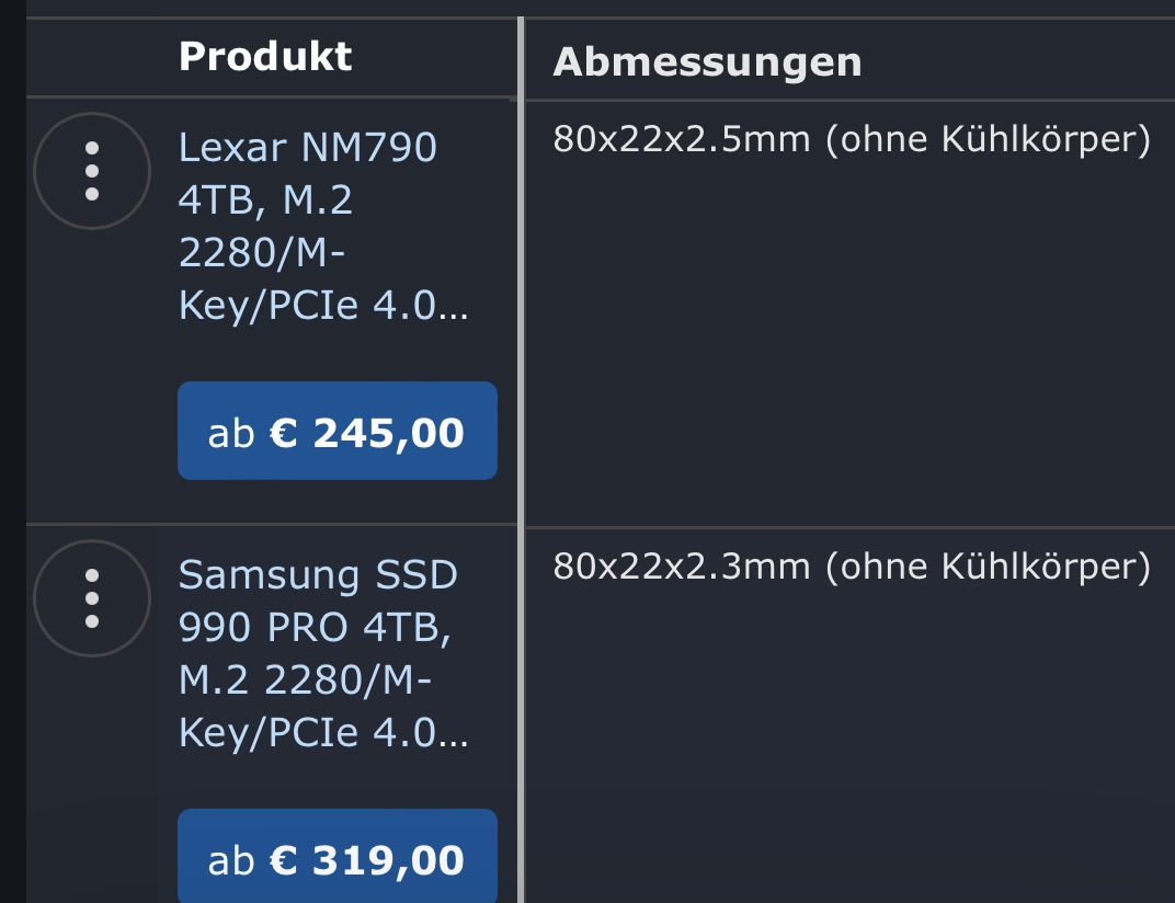 Die Lexar ist gute SSD, aber entgegen den Sparfüchsen, hatte ich mich als Markenhai vor paar Wochen für die Samsung entschieden. War allerdings kurz für ~270 im Angebot.