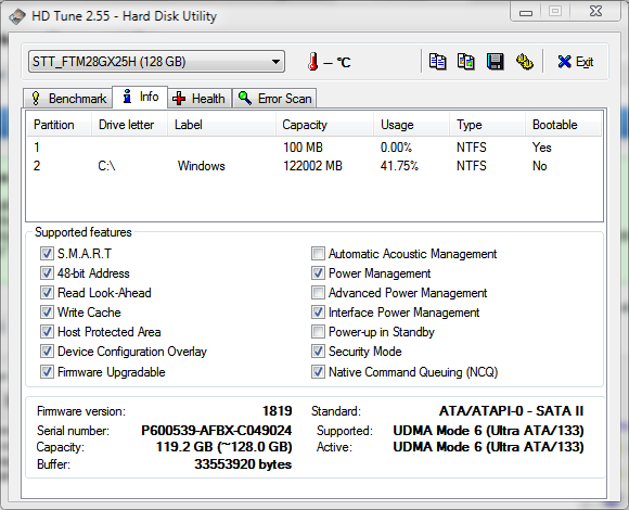 Ich wollte vorher mal die Geschwindigkeit meiner Supertalent-SSD mit 128 GB und Firmware 1819 testen, indem ich eine knapp 7 GB grosse Datei vom Desktop ins Rootverzeichnis meiner SSD kopierte.
