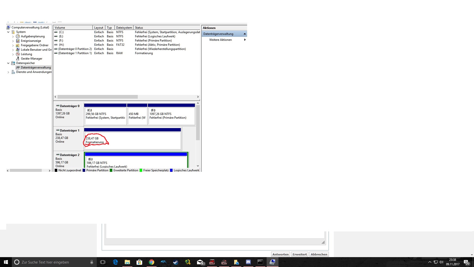 wie oben schon erklärt kann ich nicht richtig auf die SSD zugreifen und sie nicht Formatieren, sobald ich versuche sie zu formatieren hängt es sich auf und es passiert gar nichts mehr, außer dass nach einer zeit die SSD nicht mehr erkannt wird.