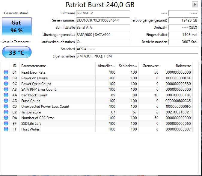 Wenn bei CDI oben "GUT" steht, heißt das nur, noch OK.Sebastian lenz schrieb:wie Crystal Diskinfo oder Check Drive sagen die Platte sei in Ordnung!?