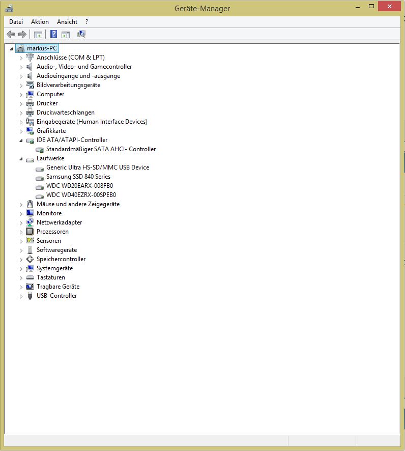 In Windows (8.1) wird die SSD einfach nicht erkannt. Weder im Gerätemanager noch in der Datenträgerverwaltung.