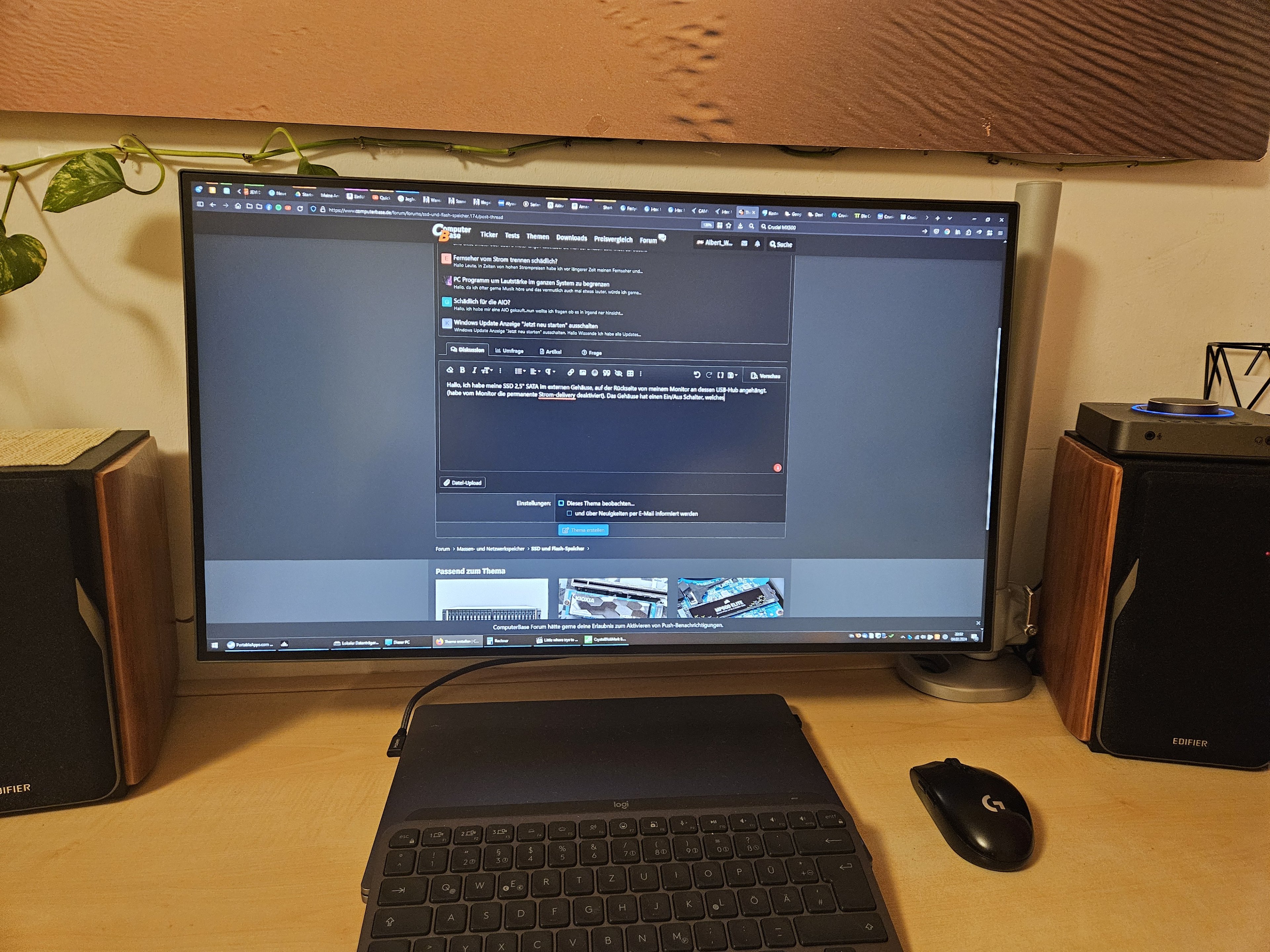 Hallo, ich habe meine SSD 2,5" SATA im externen Gehäuse, auf der Rückseite von meinem Monitor an dessen USB-Hub angehängt. (habe vom Monitor die permanente Strom-delivery deaktiviert). Das Gehäuse hat einen Ein/Aus Schalter, welchen ich sehr leicht von der Seite erreichen kann.