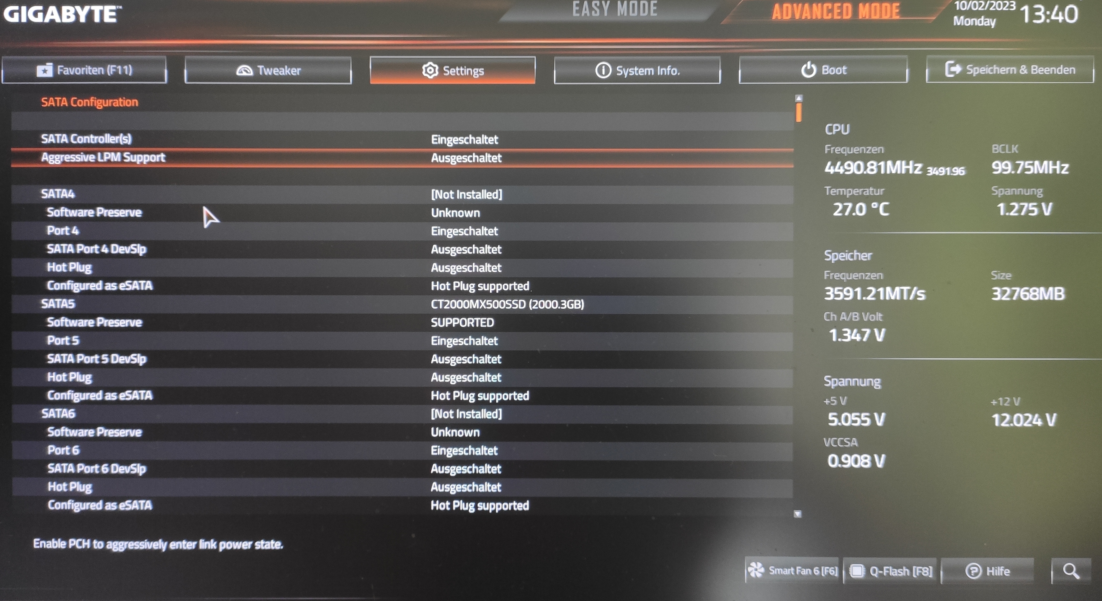 Ich poste mal meiner Ansicht nach alle relevanten Bios Einstellungen. Auch die M2 und Sata Konfiguration.