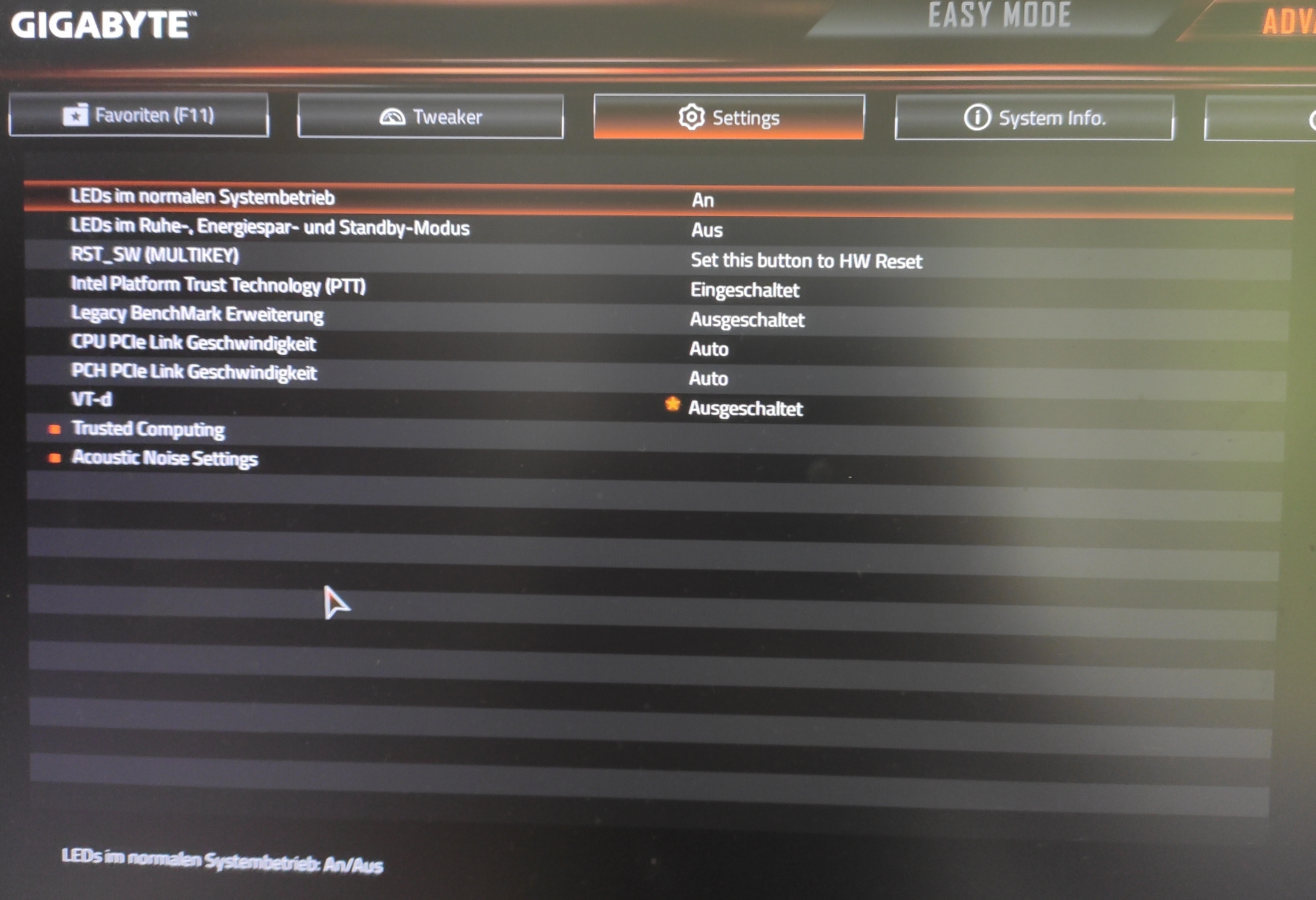 Ich kenne mich in der Konfiguration (außer XMP, Bootreihenfolge und Lüftersteuerung) nicht aus.
