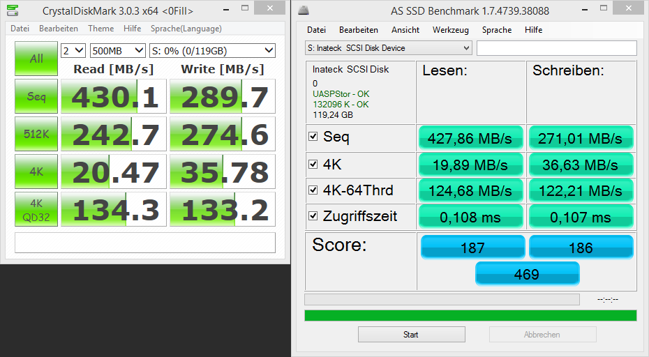 hab mir eine neue SystemSSD gegönnt weil mein alte Samsung 830 128gb einfach ständig voll ist. Problem ist jetzt einfach: Alle internen SATA Ports sind belegt. Zwei Optionen: DVD-Brennern abklemmen, weil brauch ich so gut wie nie oder aber die "alte" 128gb SSD in ein externes USB3-Gehäuse verpflanzen. Da kommen dann Spiele drauf, die von ner SSD profitieren. Frage nun: Hat irgendwer Erfahrungen was die Zugriffszeiten und Datenraten über USB3 angeht? Ich weiß ich könnt warten bis die neue Platte da ist und nen Benchmark machen, aber wenn einer sowieso schon Erfahrung damit hat kann ichs mir ggf. sparen