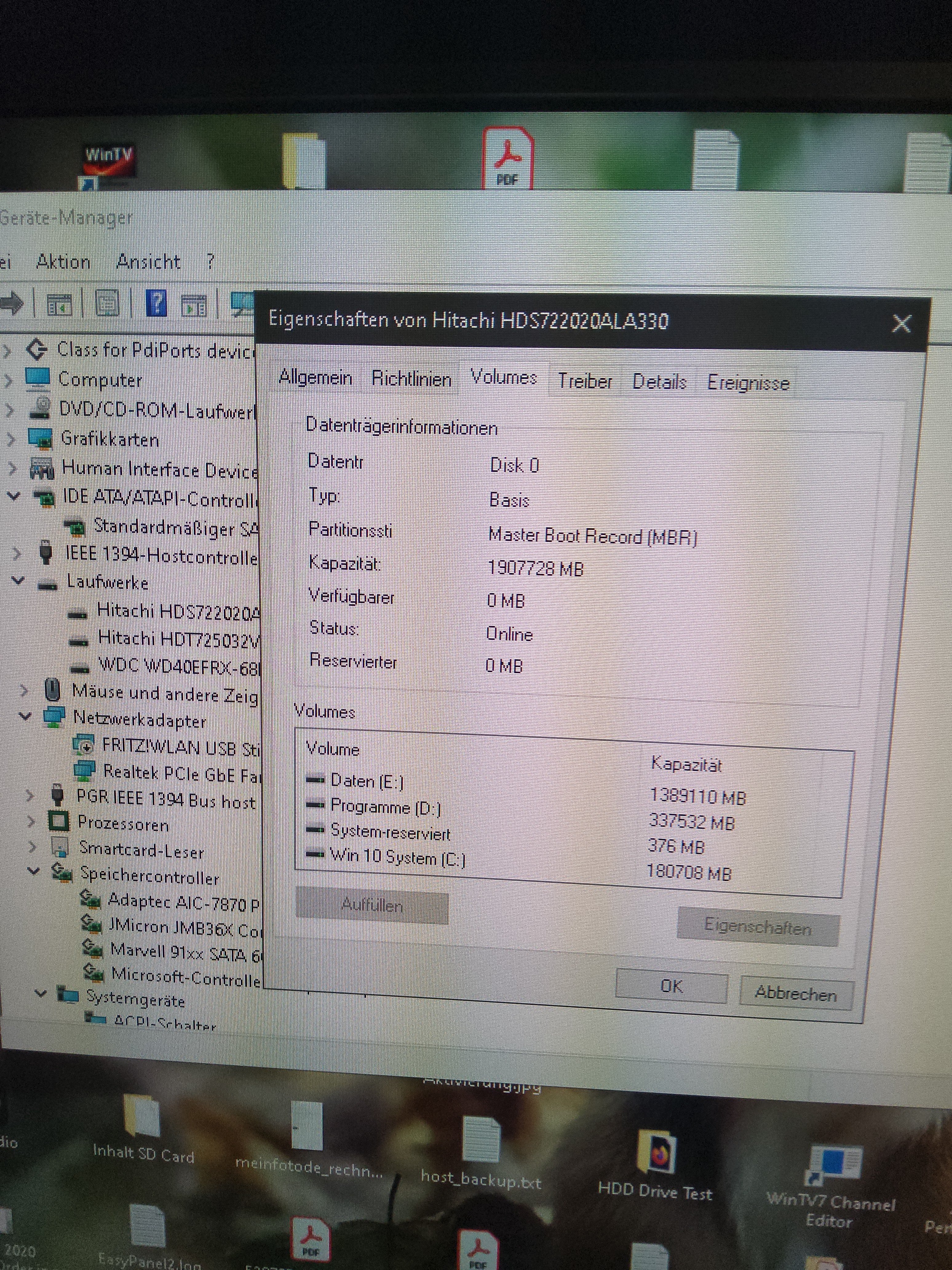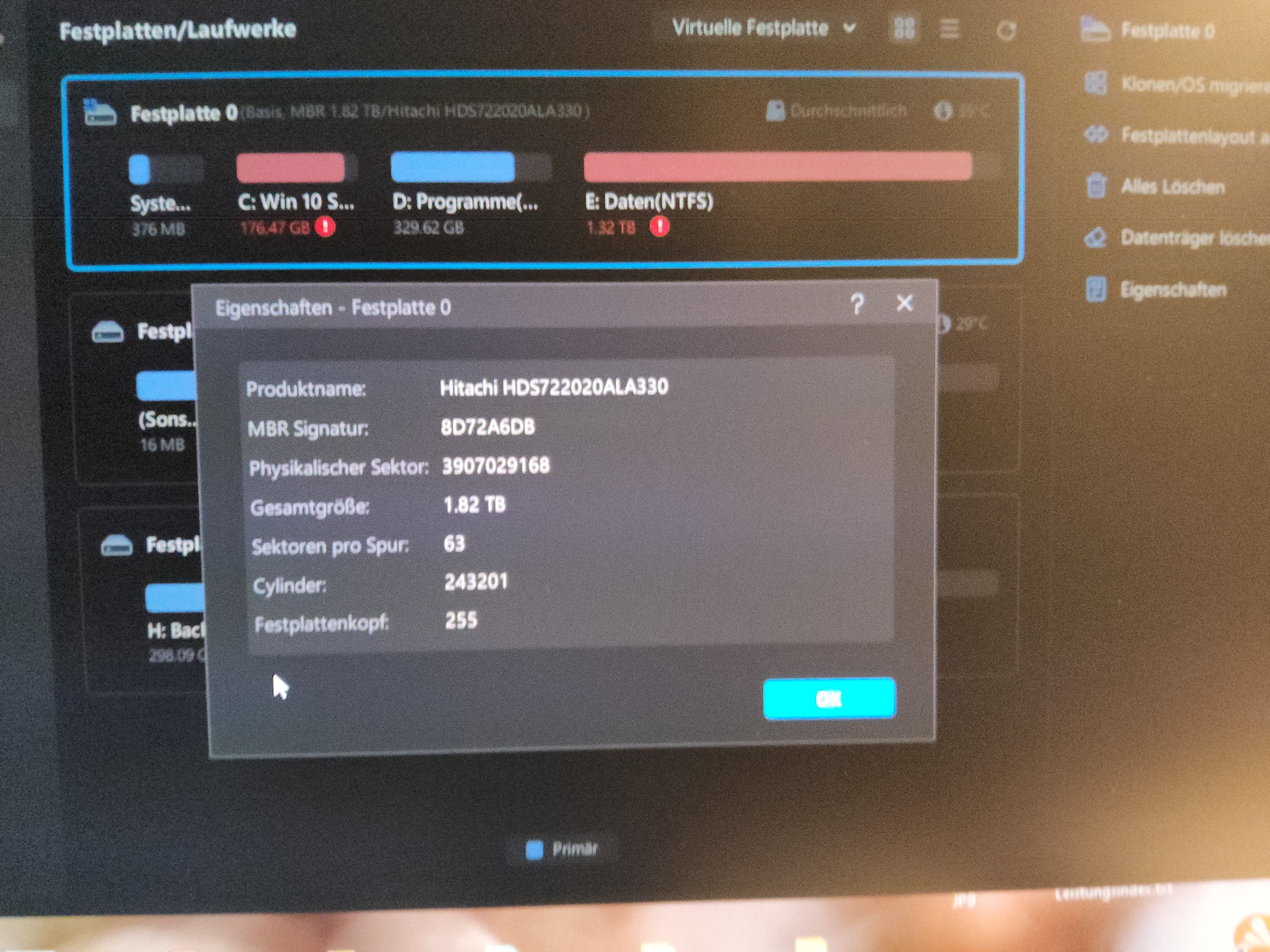 Die erste 2 TB Hitachi Festplatte (C:, D:, E