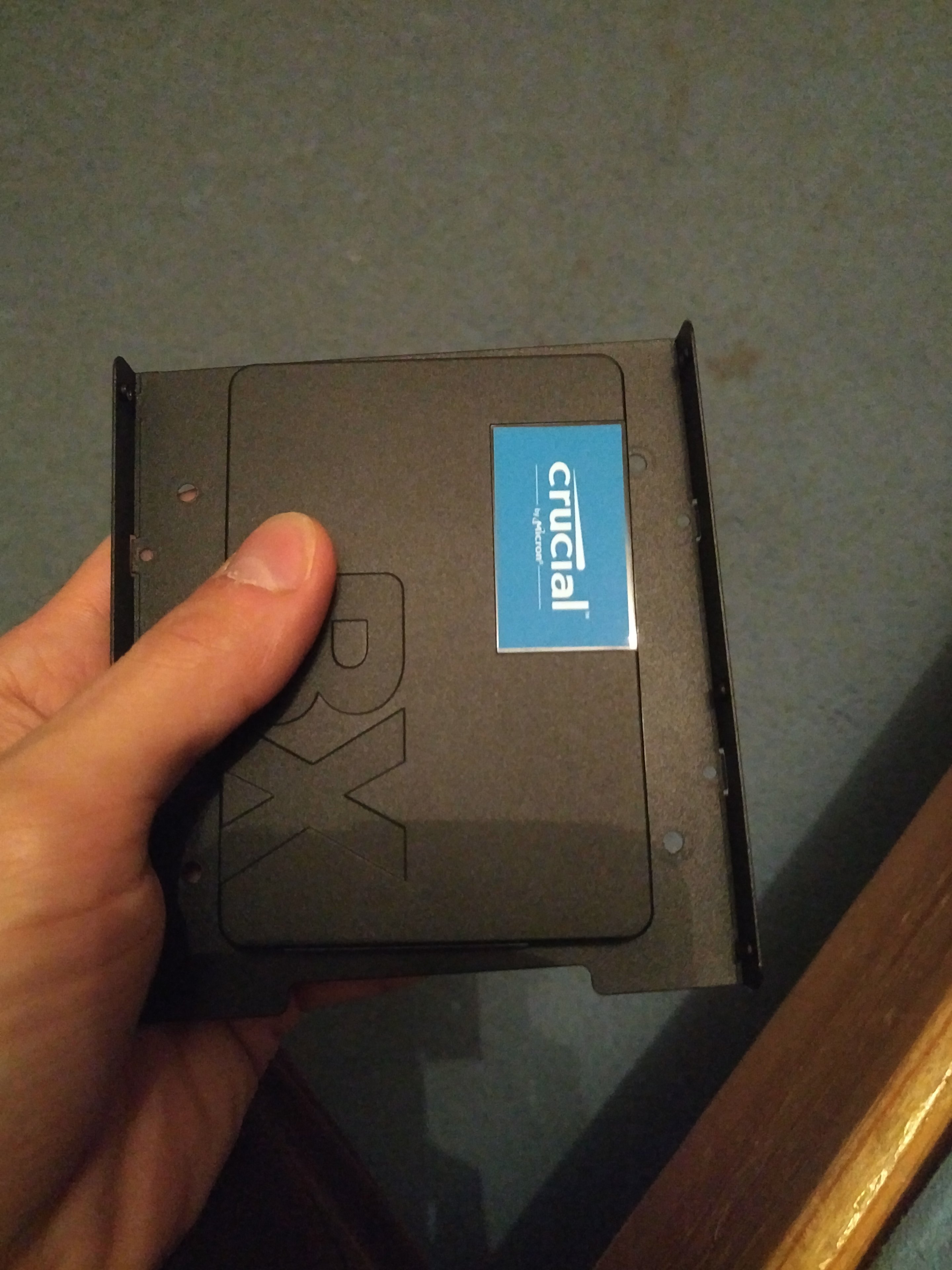 Daher suche ich einen 2,5" auf 3,5" Rahmen, der die Position der SSD so legt, dass sie den Anschlüssen einer 3,5" HDD gleicht.