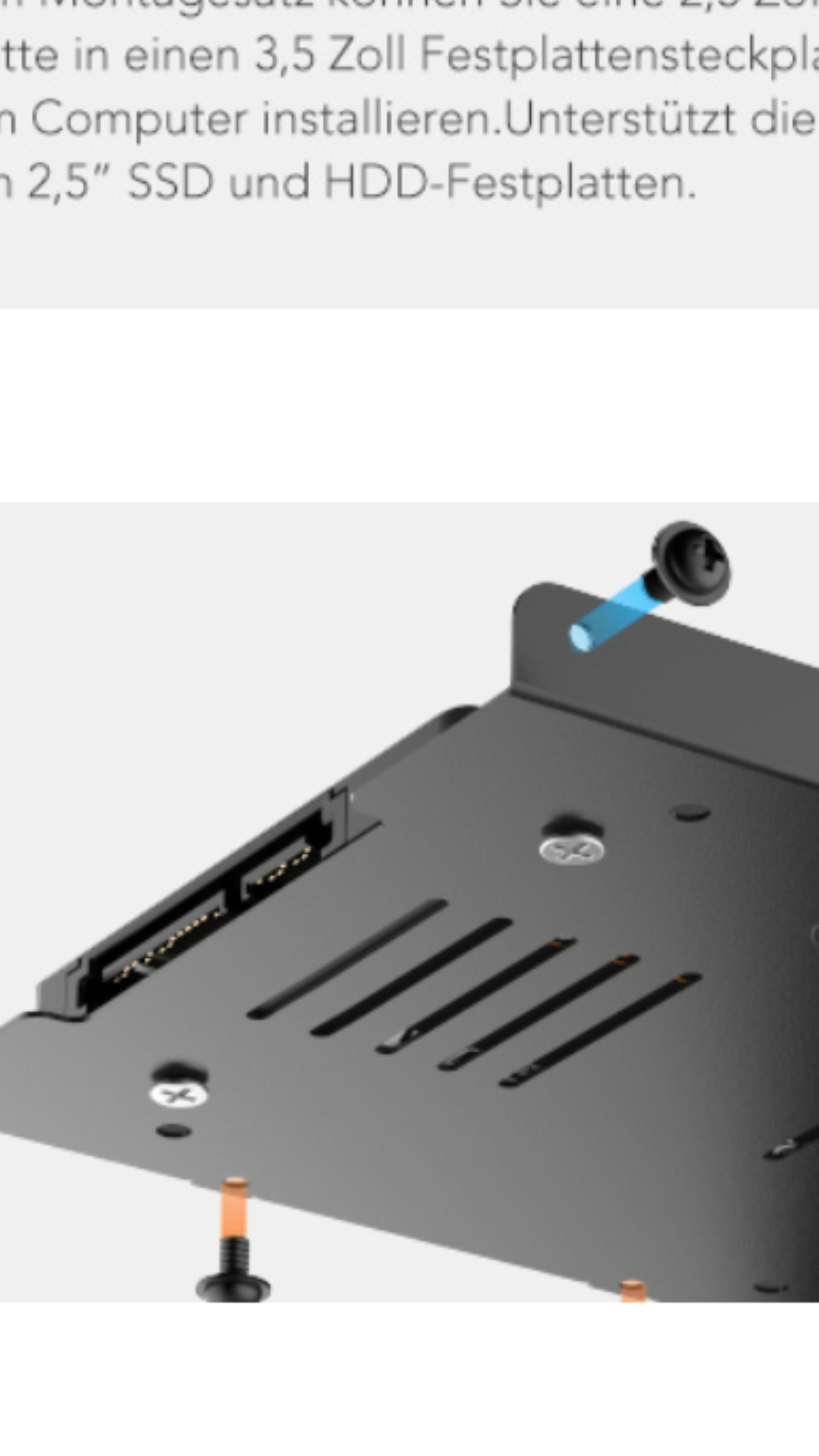 Habe ich auch so geschrieben. Die blanken Senkkopf befestigen die SSD an dem Rahmen (mit U-Scheiben zwischen SSD und Rahmen). Die Schwarzen Flachkopf den Rahmen am PC.Computer95 schrieb:Auf dem Bild des Verkäufers werden die silbernen für die Befestigung der SSD von unten an den 3.5 Zoll Rahmen genommen.