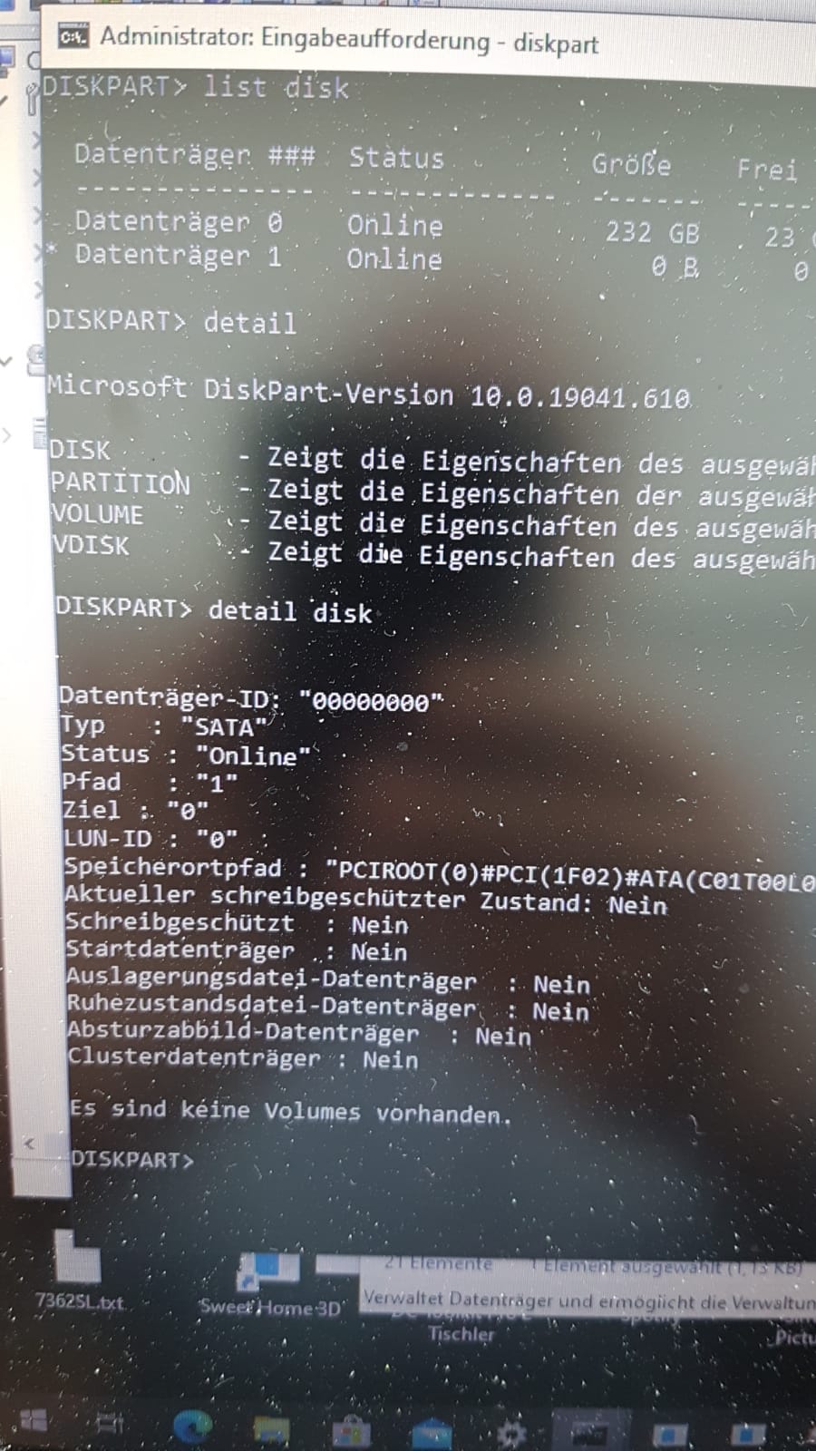 PC bootet nur noch zum BIOS-Logo und reagierte auf keinen Tastaturbefehl mehr. Nach dem ich die SSD mit der Windowsinstallation entfernt hatte, konnte ich wieder vom USB-Stick booten und ein neues Windows installieren. Leider ist das letzte Backup schon etwas älter und nun fehlen ein paar Dateien.