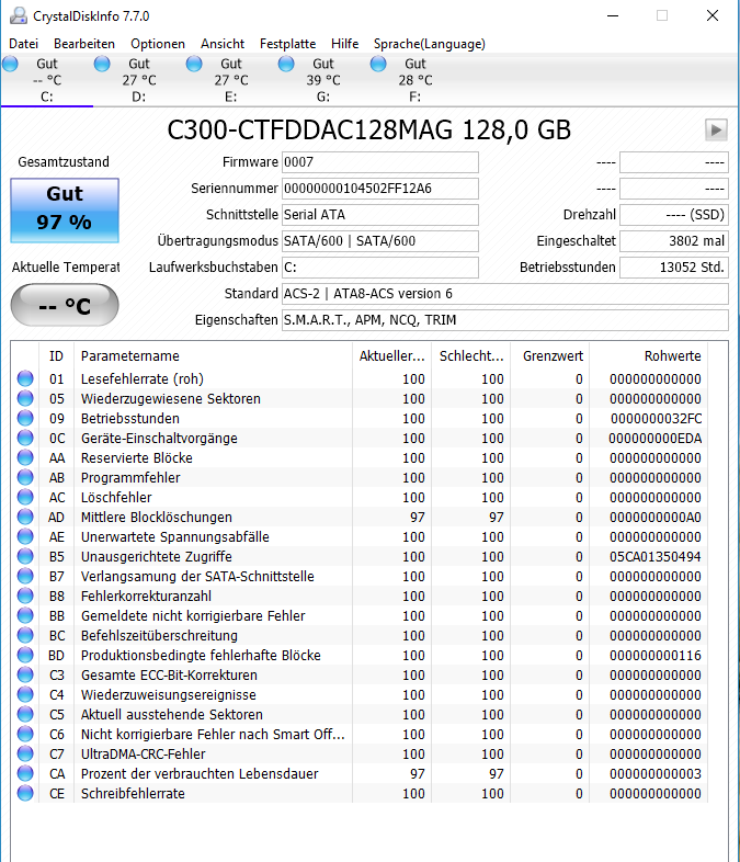 Hatte dann das OS komplett neu installiert. Aber der Rechner bootet extrem langsam, bleibt bei dem Aorus-Bild sehr lange stehen, startet dann Win10 und nach ca. 4 Minuten ist der Rechner voll Einsatz bereit. Habe gerade Urlaub und wollte mal wieder das ein oder andere Spiel spielen. Dabei sind mir die Ladezeiten extrem aufgefallen. Die LvL in DeusEx zum laden braucht fast eine Zigarettenlänge...das ist nicht normal. Habe dann CrystalDiskMark über C: und d: laufen lassen und schwarz auf weiß zu sehen bekommen das da was nicht stimmt.