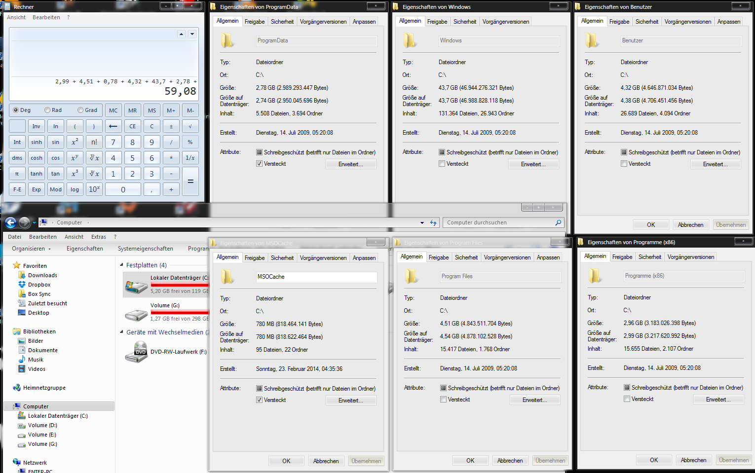 Habe mal unten ein Bild angehängt, wo ich einfach ganz stumpf alle Ordner aufgelistet habe und mir das so zusammengerechnet hab.