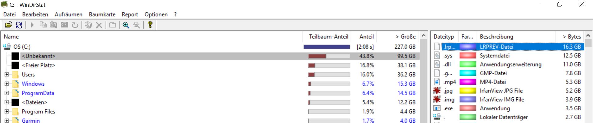 Beim Aufräumer meiner SSD ist aufgefallen, dass fast 50% des Speicherplatzes belegt ist, aber nicht ersichtlich ist was er beinhaltet (Bild unten). Im Explorer ist dieser Bereich gar nicht erst ersichtlich aber die Eigenschaften sagen: 30 GB frei, 188 GB belegt. Alle sichtbaren Dateien zusammen ergeben dann auch nur ca. 32 (43) GB wie auch unten ersichtlich.