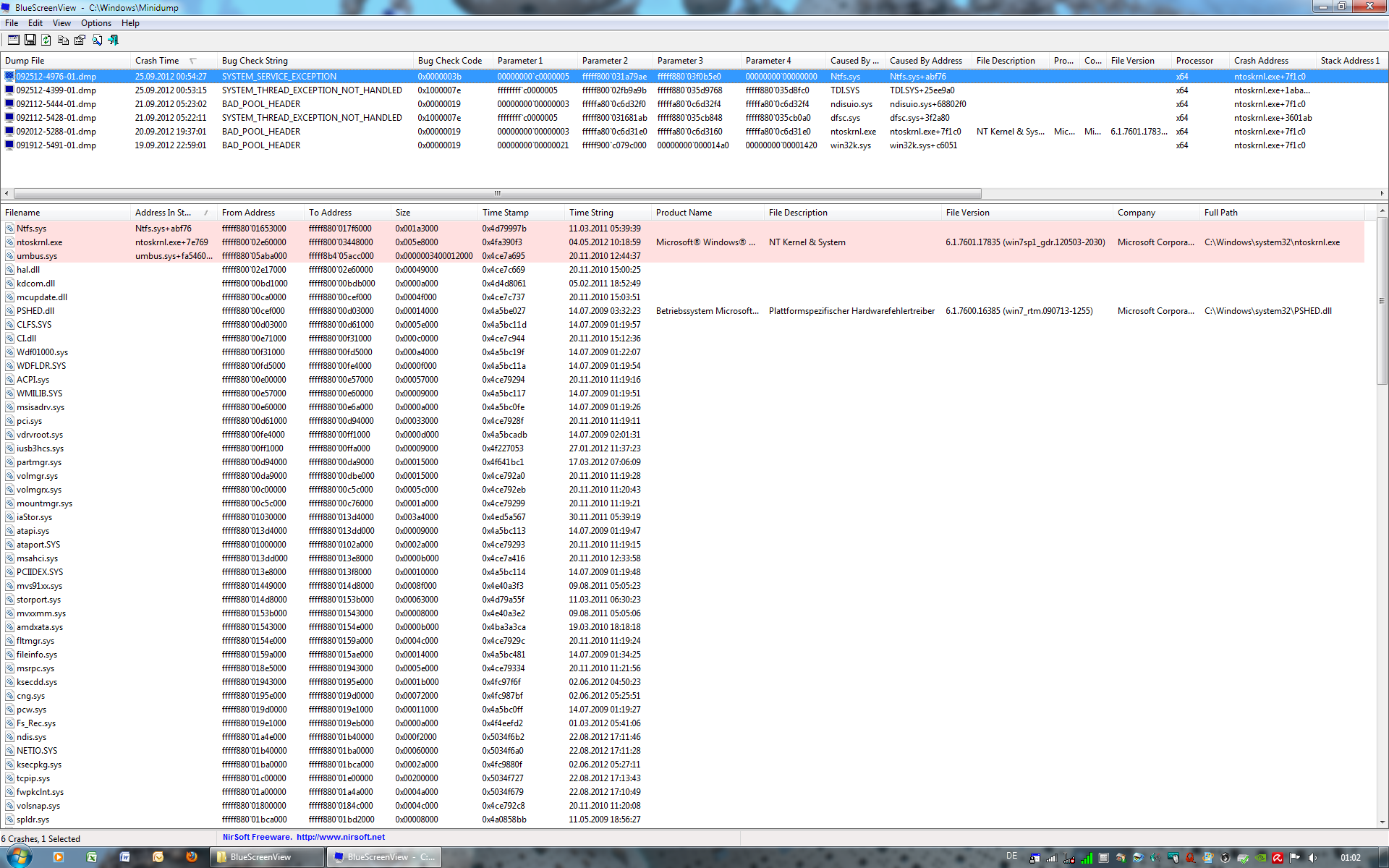 Ein Treiberproblem ist aus den Dumps nicht zu erkennen.