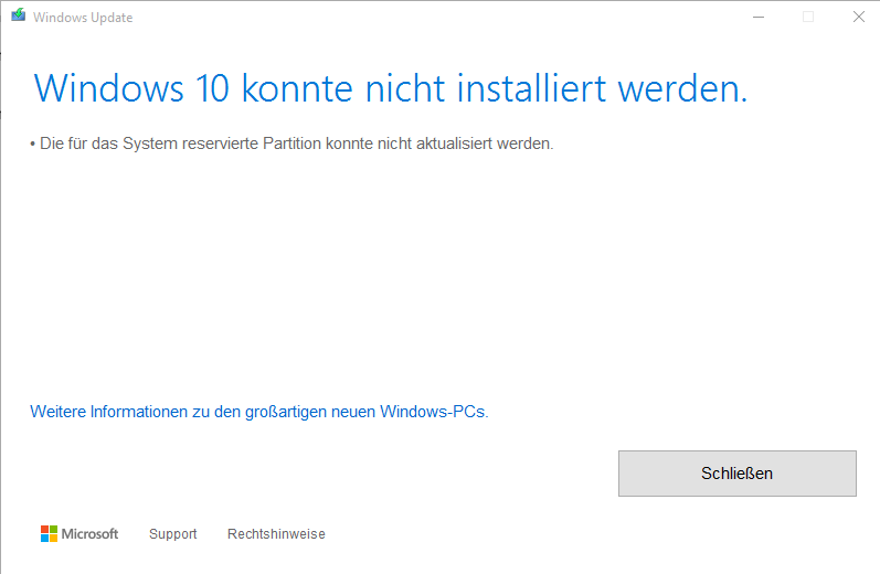 Ich habe jetzt schon seid einigen Stunden das Problem, das ich für meine neue Grafikkarte (1050ti) keinen Treiber installieren kann. Ich habe heraus gefunden das es daran liegt das meine Windows Version zu alt ist, als ich diese versuchte zu updaten kam nur die Fehlermeldung "Windows 10 konnte nicht installiert werden. Die für das System reservierte Partition konnte nicht aktualisiert werden." Ich denke mal das es daran liegt das auf meinem System Volumen kein Speicher mehr vorhanden ist (Also das Volumen (E