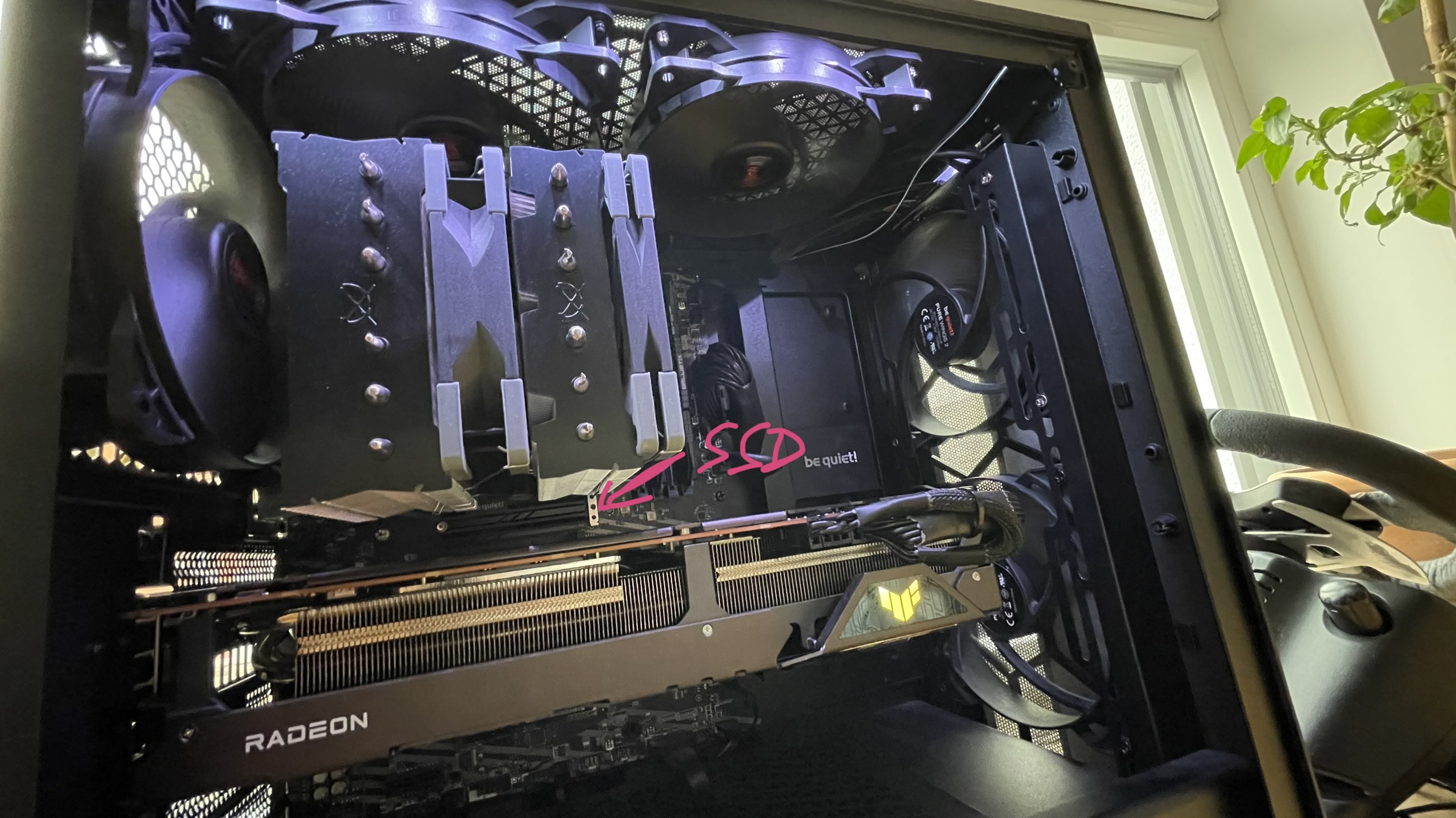 Jetzt grübel ich, wie ich die Idle-Temperatur runter bekomme, denn die meiste Zeit verbringt der PC nunmal im Idle. Bin für eure Ideen und Gedanken dankbar. Zur Veranschaulichung ein Bild des Situation im Gehäuse.