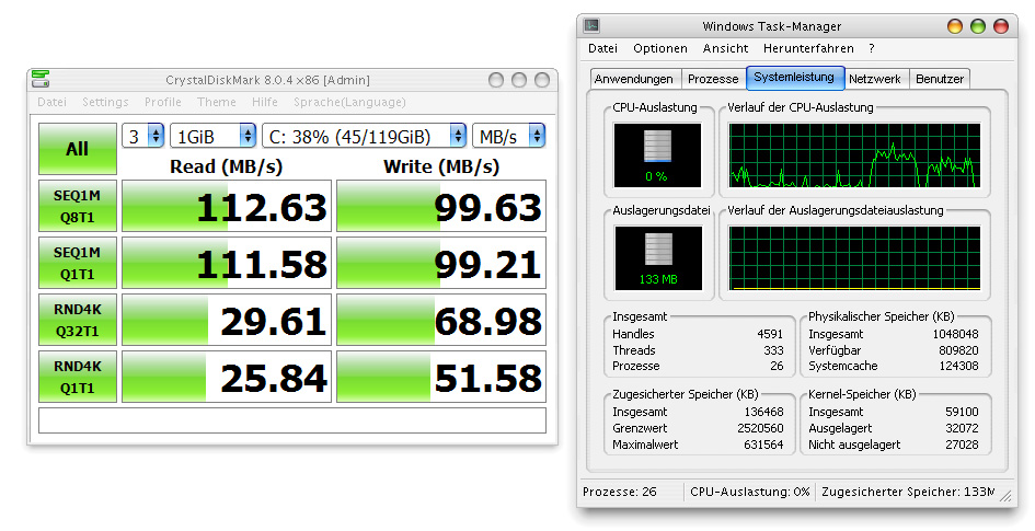 Jetzt kam mir die Idee, einfach eine SSD einzubauen, schließlich haben die bei mir so manch' Wunder bewirkt, doch Pustekuchen, das Mainboard hat nur IDE-Möglichkeiten.
