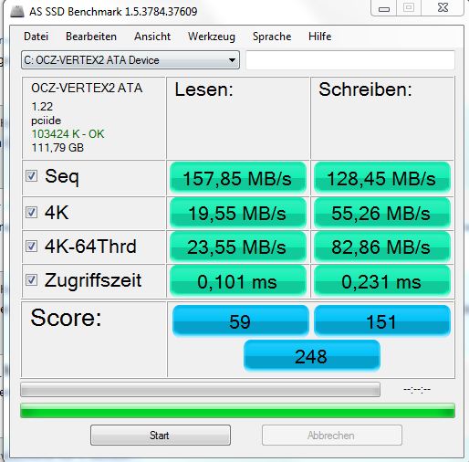 habe gerade Windows auf meiner neuen SSD installiert, aber irgendwie bekomme ich das ganze nicht mit AHCI hin. Habe das allerdings auch erst nach der Installation im Bios eingestellt und ich sehe nun keine Änderung beim AS SSD Benchmark...
