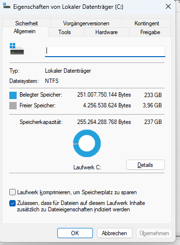 Jetzt wollte ich gerade eine neue Software installieren und da kommt die Meldung, "nicht genügend Speicherplatz", o.ä..