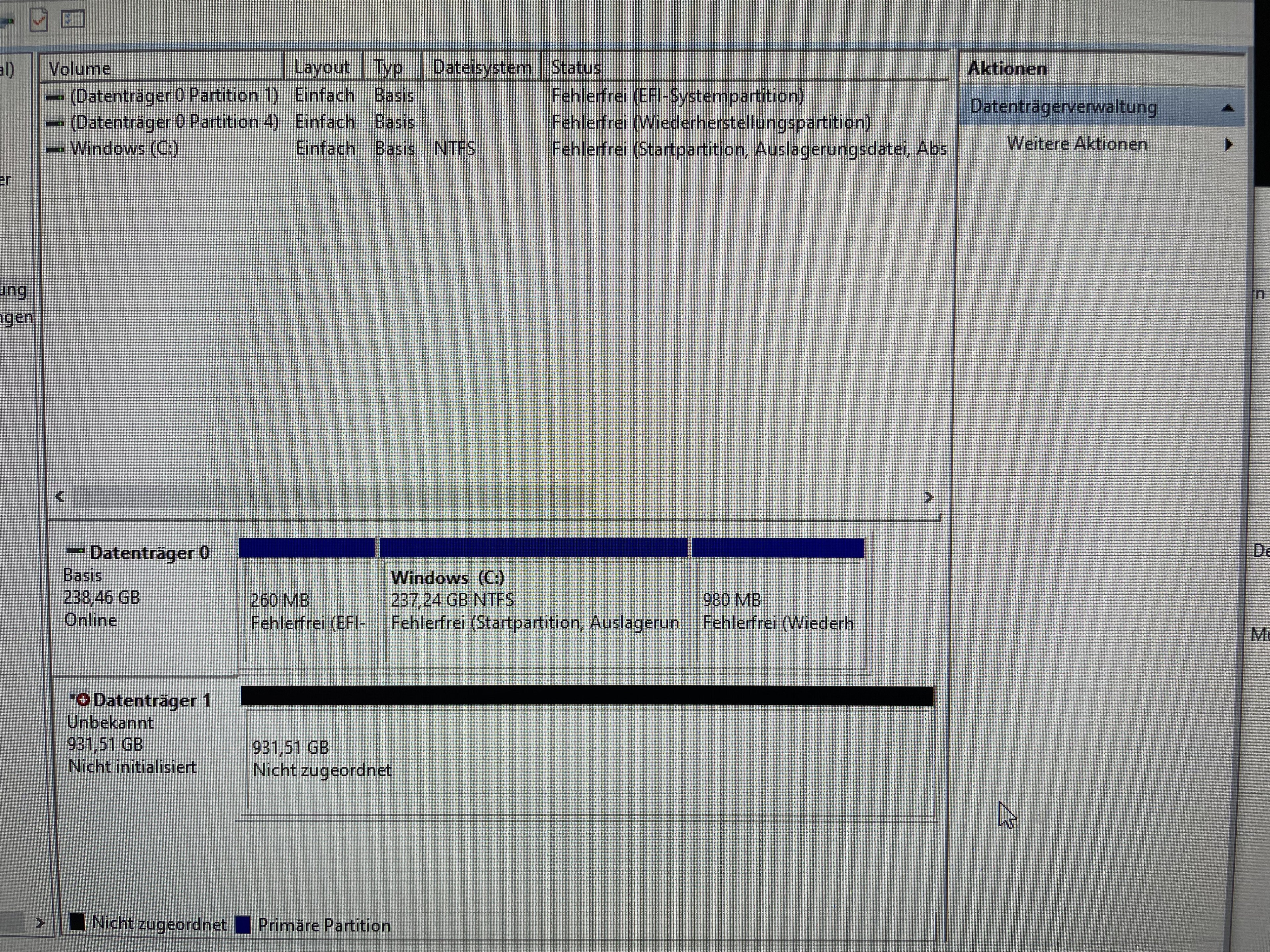 Ich habe damals Windows 10 auf einen USB Stick gebootet. Dann habe ich die alte SSD rausgenommen gegen die neue getauscht und beim hochfahren dann Windows über den USB Stick drauf installiert. Die SSD befindet sich jetzt auf dem Laufwerk C. Außerdem habe ich noch ein Laufwerk D (1TB HDD Festplatte).