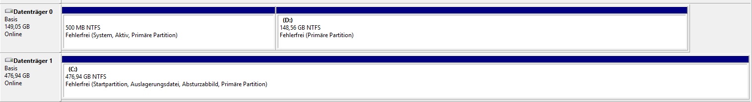 SataAnschluss 5: (Datenträger 1) M4 500GB. Eine Partition, primär, hier ist Windows 10 installiert.
