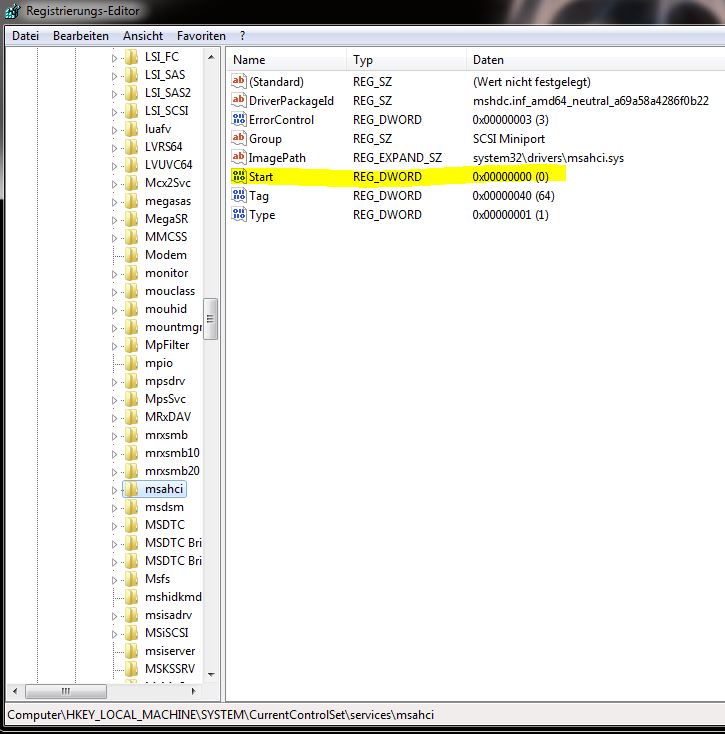 Wie erwähnt habe ich vor der neuen install von WIN7 auch im Bios auf AHCI umgestellt gehabt.