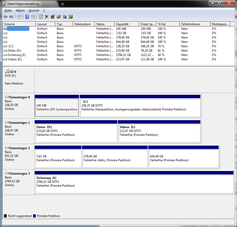 Auch bis zu dem Zeitpunkt wo die HDDs hier durch SSDs abgelöst wurden, haben die HDDs nur eine einzige Partition gehabt. Alles andere wurde über die Ordnerstruktur gelöst.