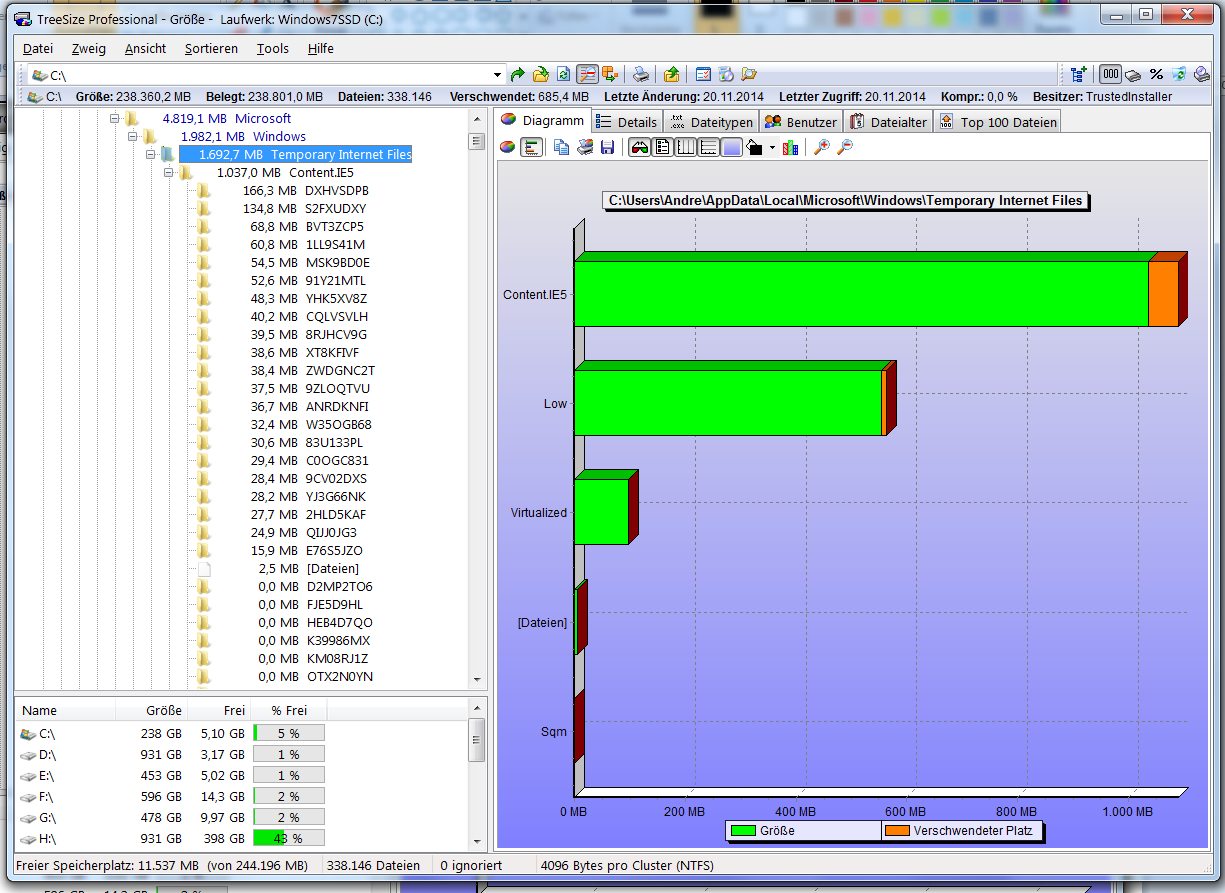 Was mich nervt ist "Content.IE5", da sind IMMER um die 1.2Gb drin, obwohl ich in den Optionen