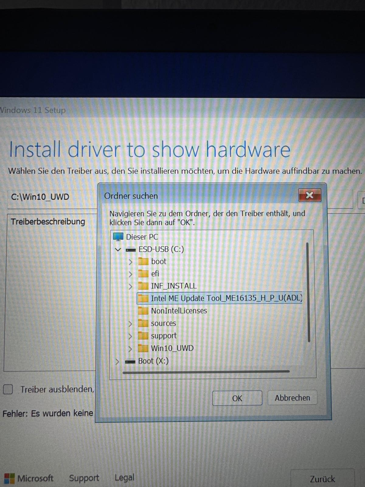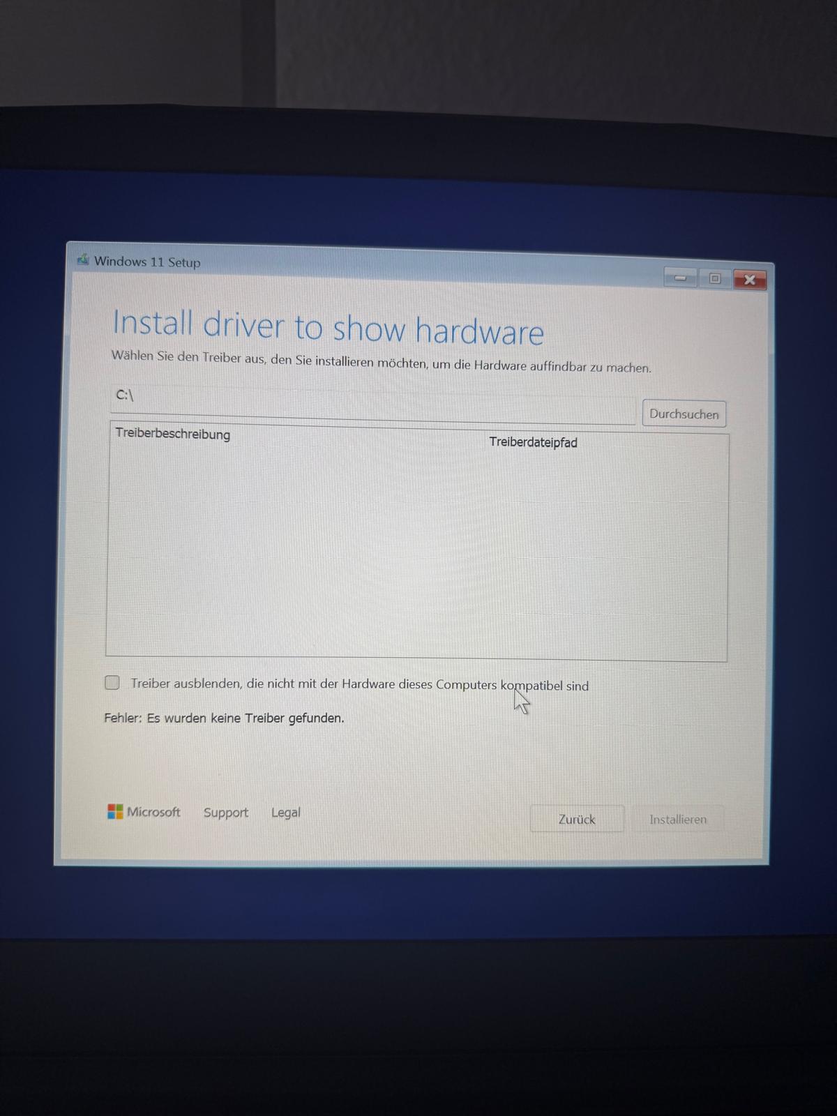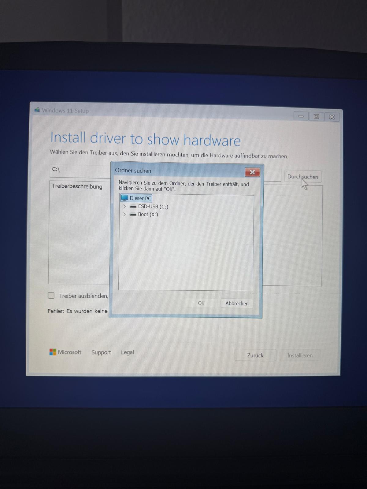 ✅ Auch mit einem separaten USB-Stick ausprobiert – Treiber wird trotzdem nicht erkannt