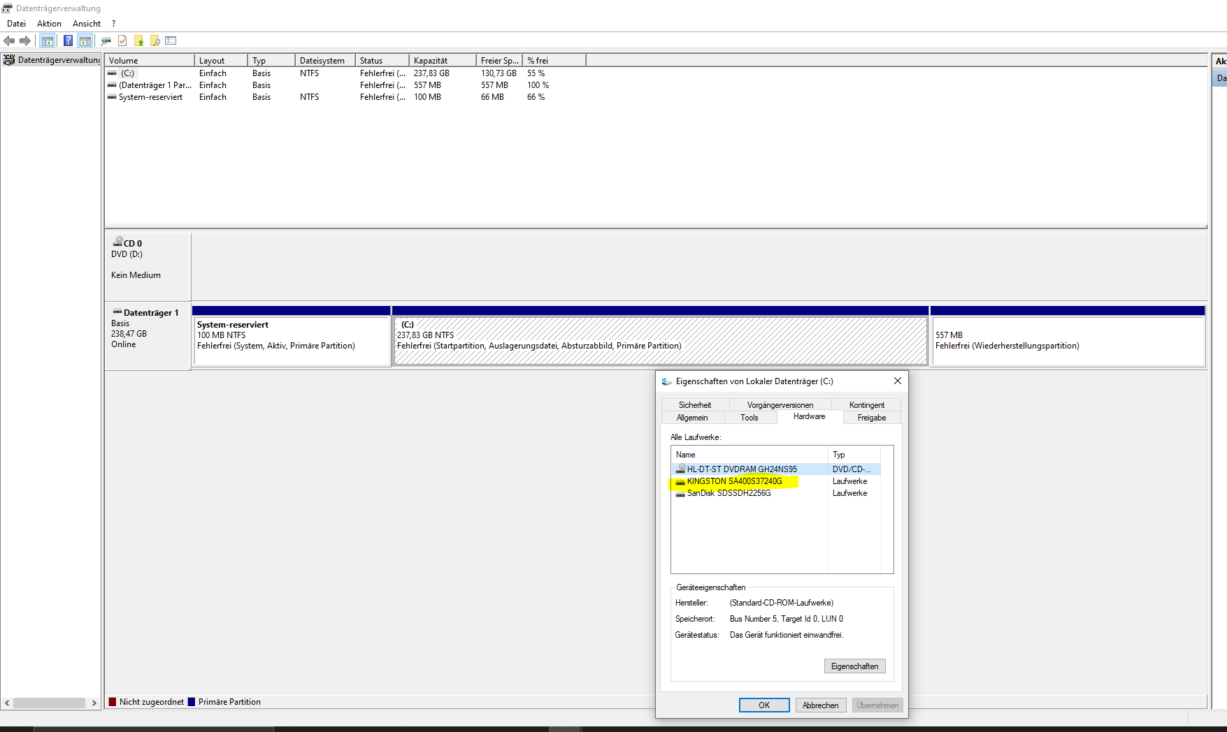Sie ist aber in Laufwerk C aufgeführt. Aber die freien GB Speicherplatz wurden nicht erhöht. Ich müsste jetzt 240 GB dazu haben.