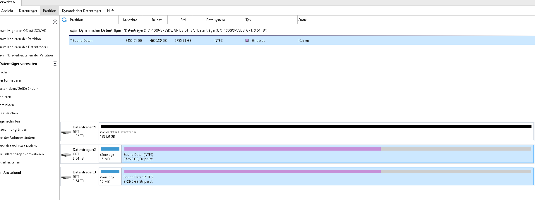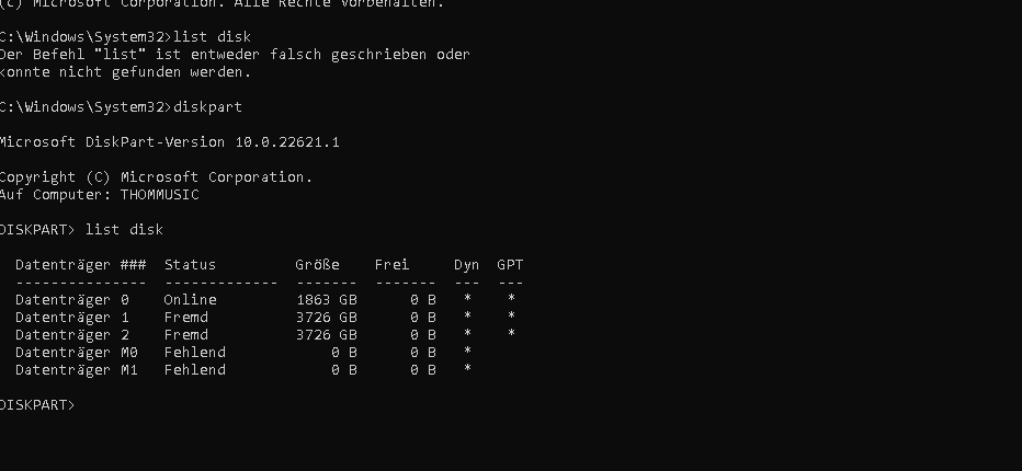 In der Datenträgerwaltung erscheinen die Laufwerke als: Fehlend