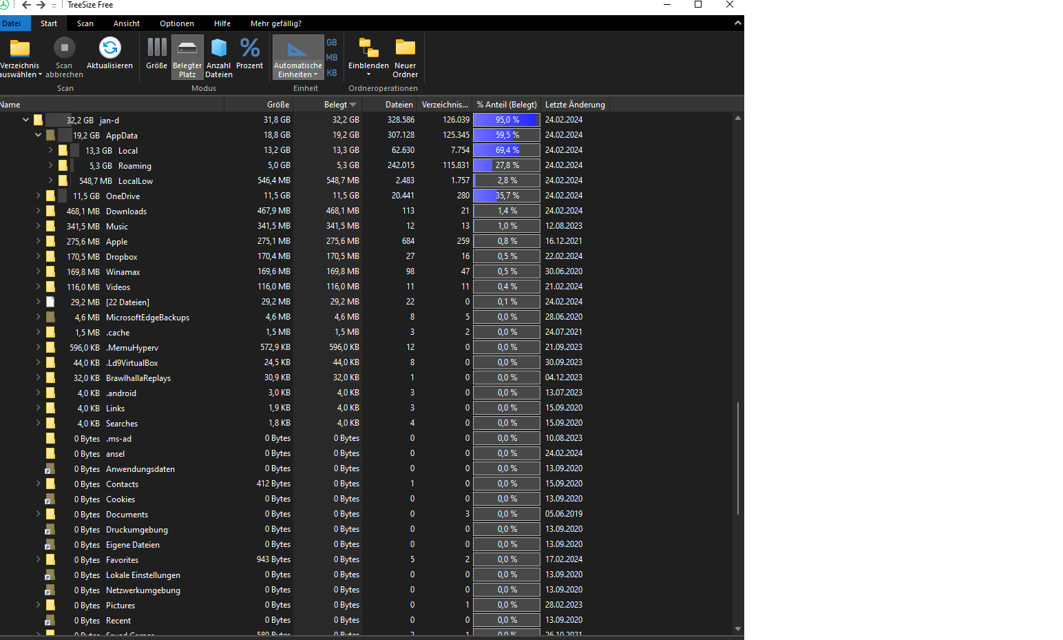 Habe nun fast alle überschüssigen Daten gelöscht und oder verschoben.