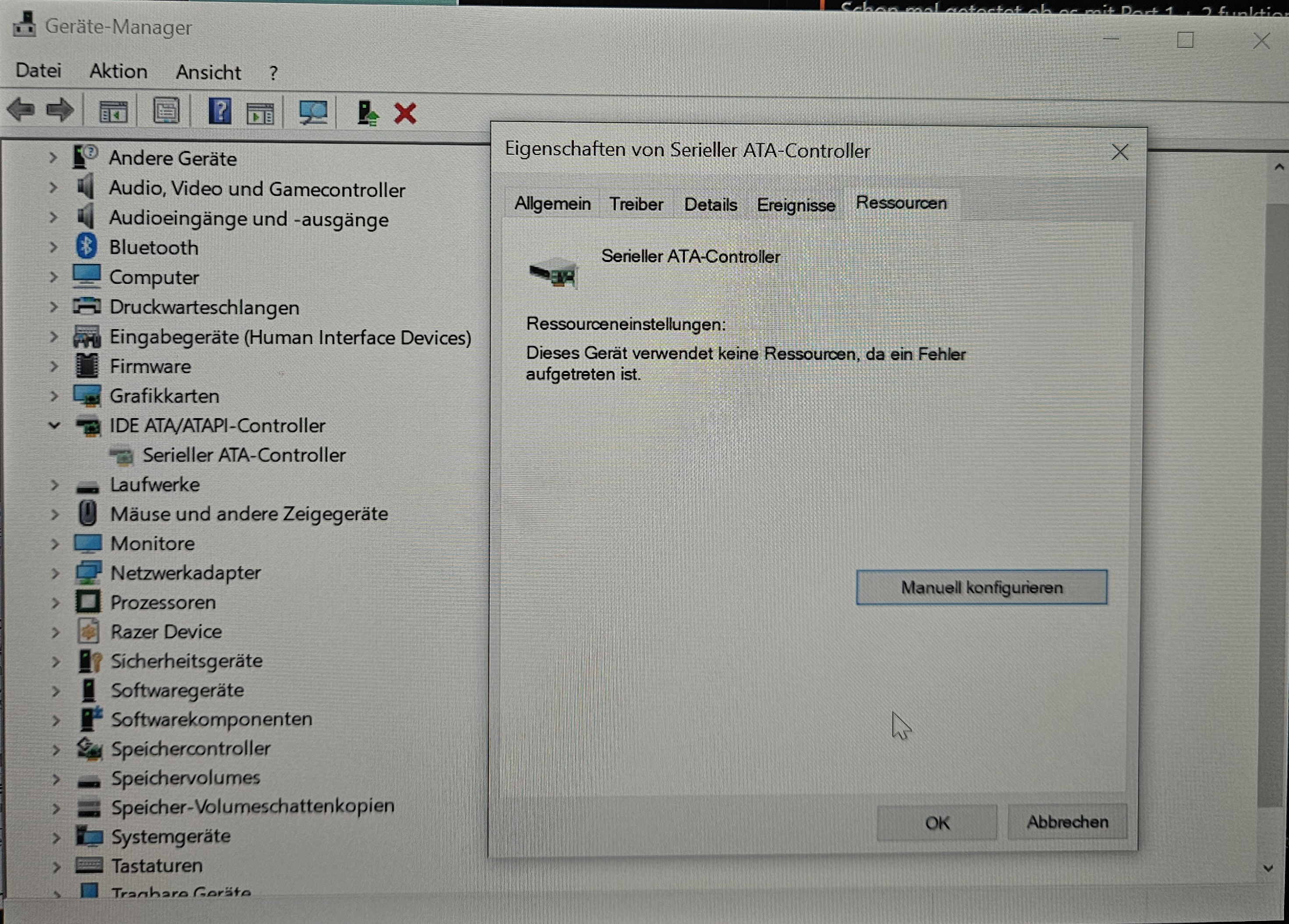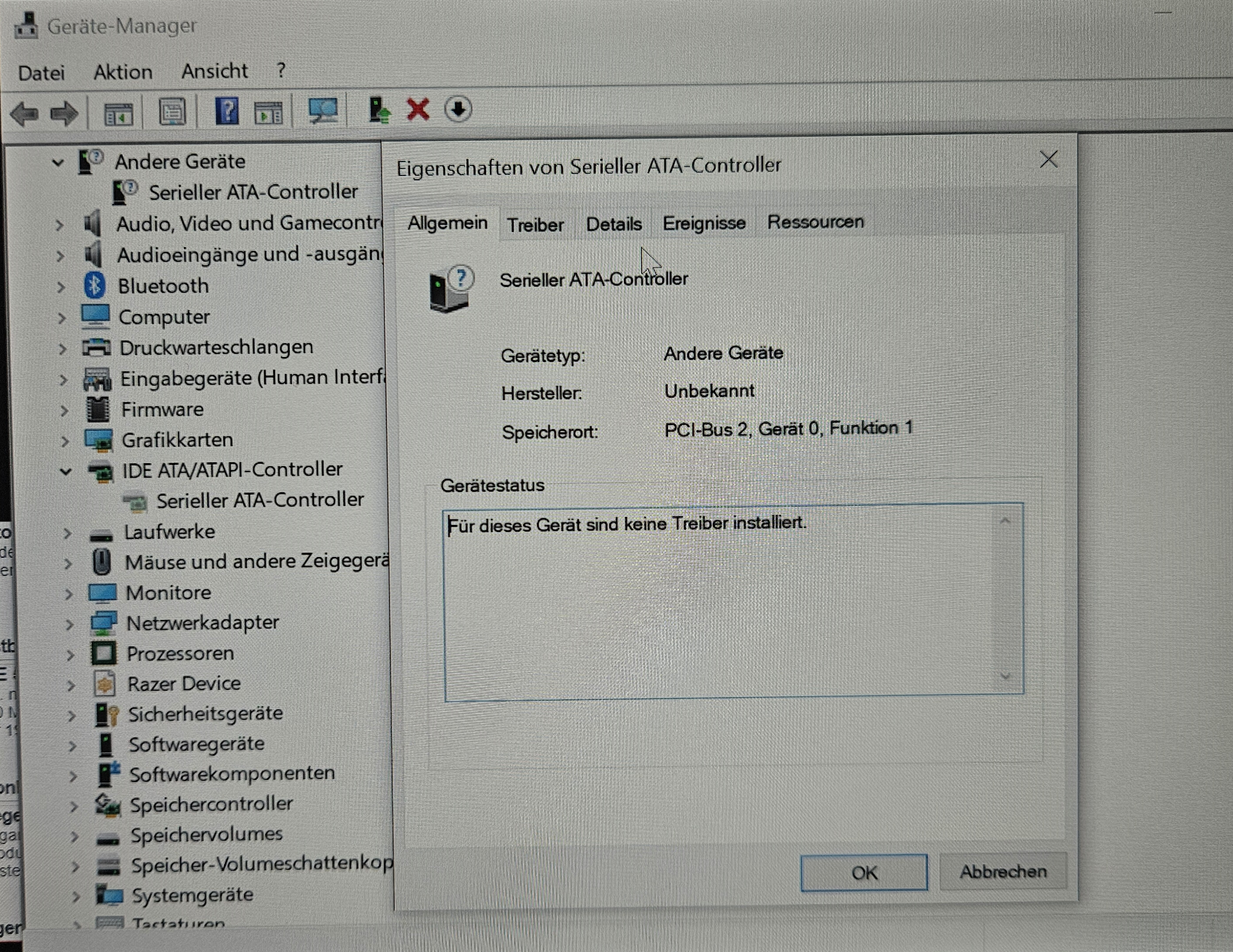 Und selbst wenn er den RAID-Modus aktiv hat, müsste ja ein Gerät auftauchen im Geräte Manager, für das ein Treiber fehlt...