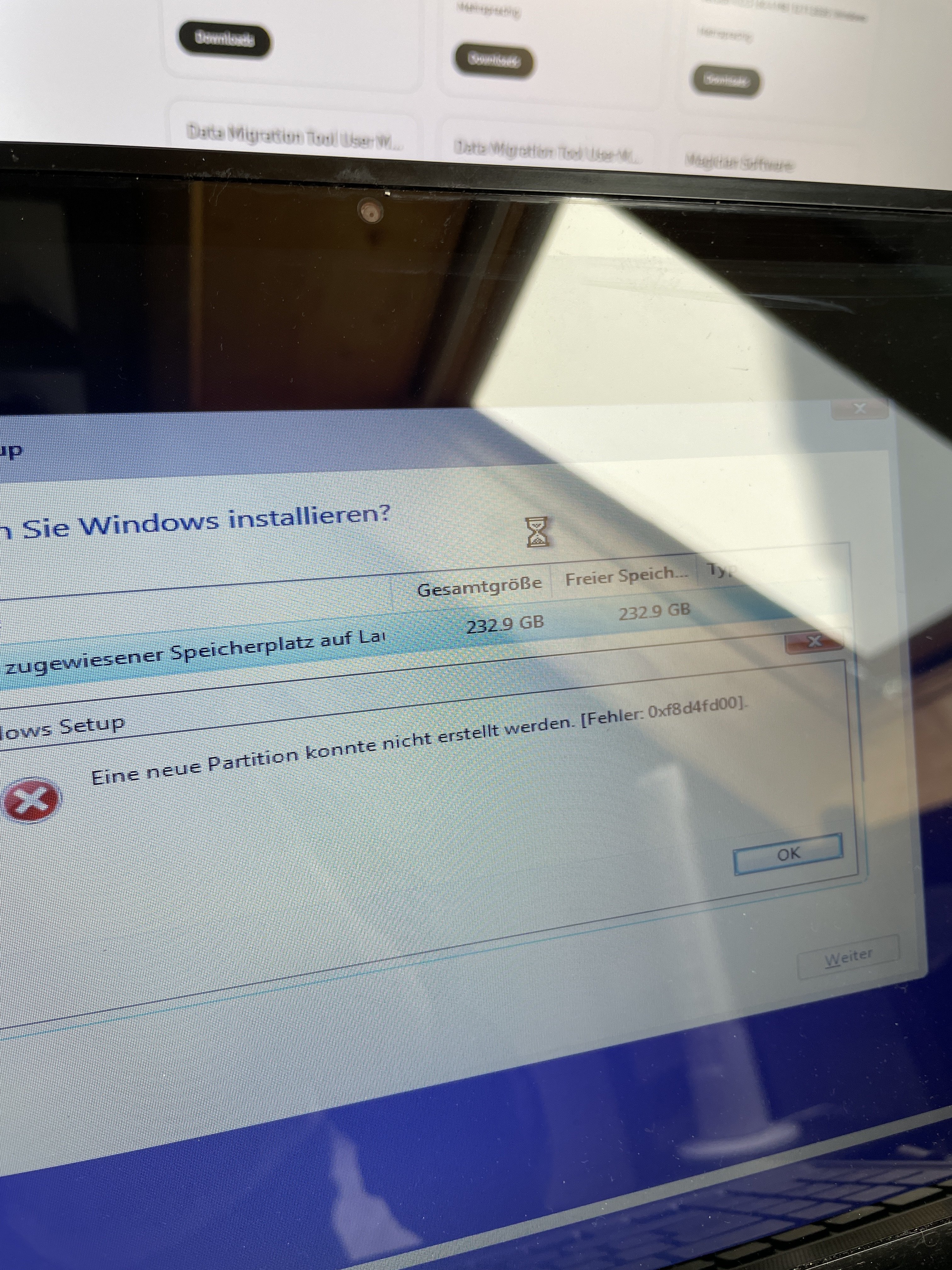 So Herrschaften. Samsung SSD ist dein. Habe Fortschritt - aber leider noch kein perfektes Ergebnis. Ich komme im Setup viel weiter, sodass es nicht mehr hängt oder so, aber ich kann die Platte nicht partitionieren.