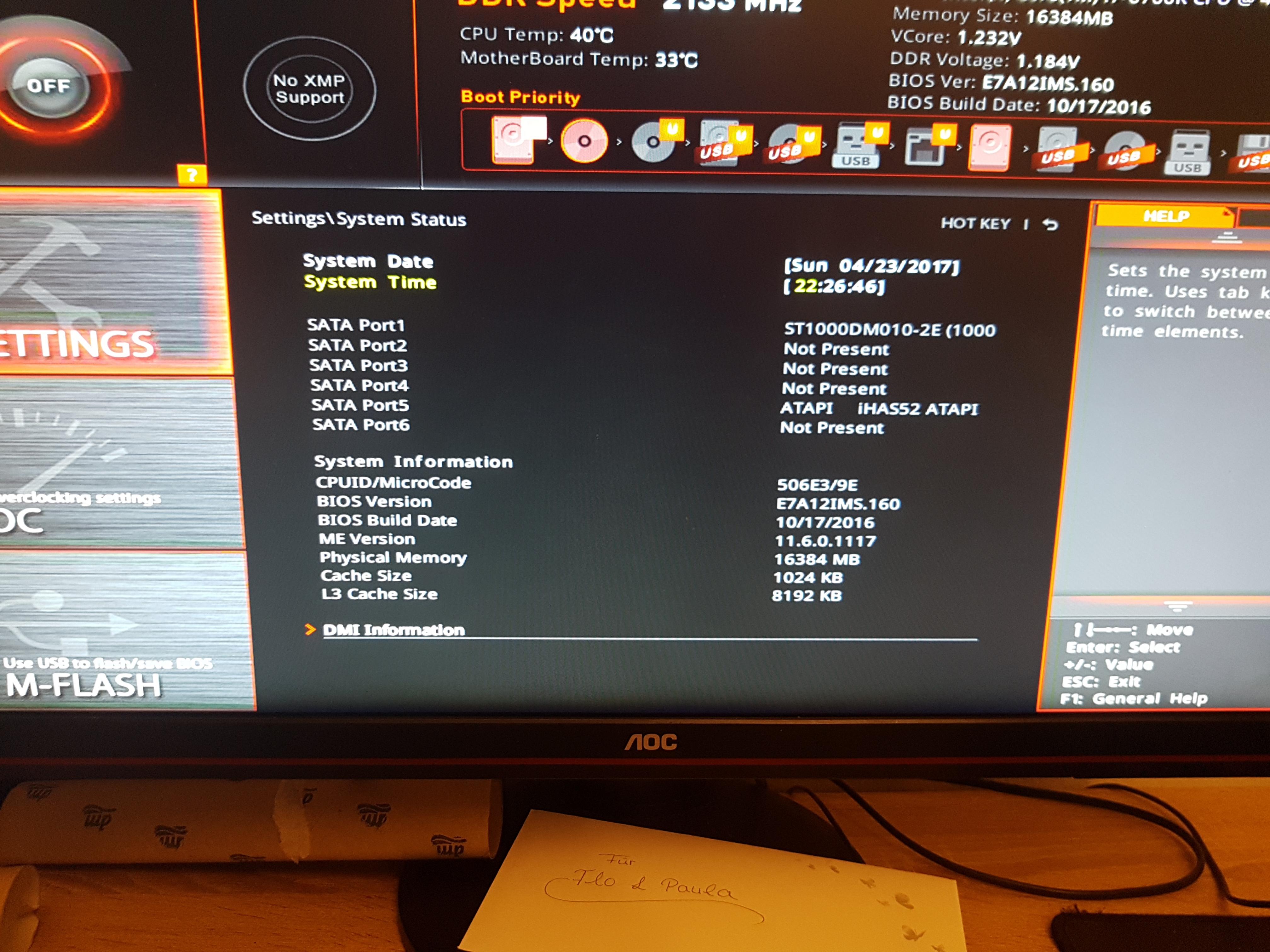 Zu aller erst erschien beim Booten die Nachricht "reboot and select proper boot device" nach 5 std googlen 100x lösungdansätzen weiter hat nichts davon geholfen. Umstecken bringt nichts, alle möglichen Variationen mit verschiedenen kabeln ausprobiert. Im bios Menü wird sie mir mal angezeigt mal wieder nicht. Wenn sie denn mal angezeigt wird kann ich sie nicht booten, dann lande ich in einen unendlichen Ladebildschirm. Ich habe sie ausgebaut und in meinen zweiten PC gepackt, PC gestartet und sie wurde erkannt ich konnte auch darauf zugreifen. Wieder in meinen neuen PC gepackt und wird nicht erkannt. In der Datenträgerverwaltung wird sie mir auch nicht angezeigt. Ich musste jetzt meine HDD formatieren, dort Windows installieren. Funktioniert. Nur meine SSD wird einfach nicht erkannt, ich blick nicht mehr durch..