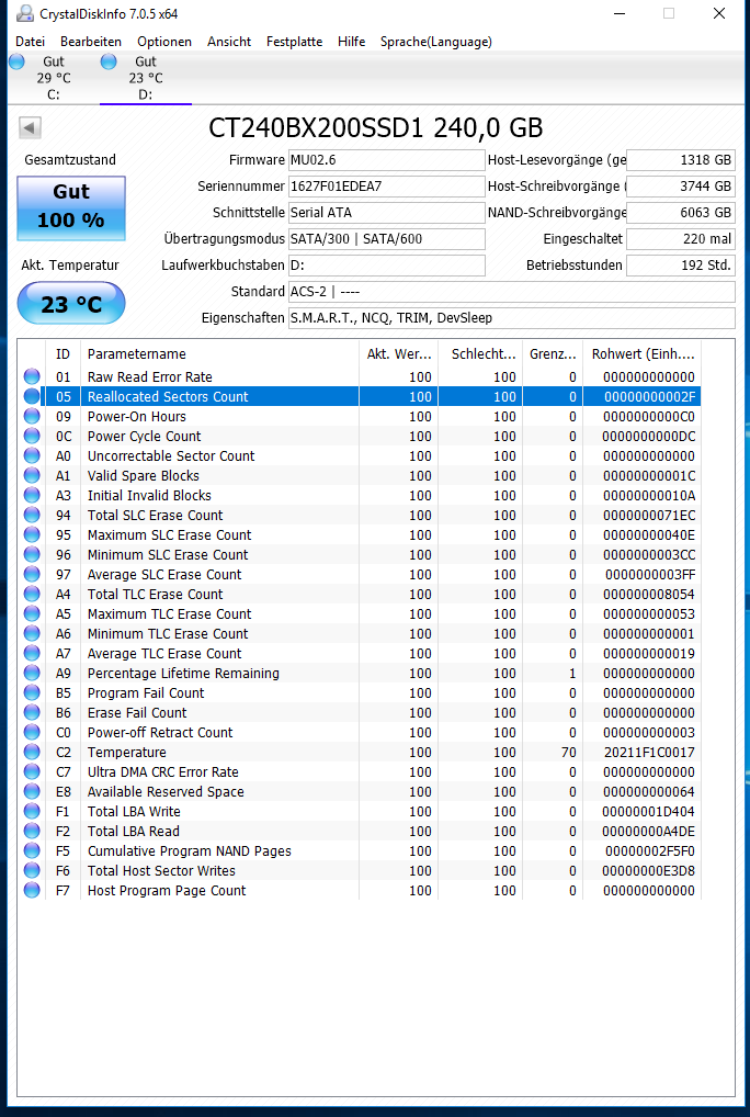 Es handelt sich um eine ssd crucial bx200 240gb.