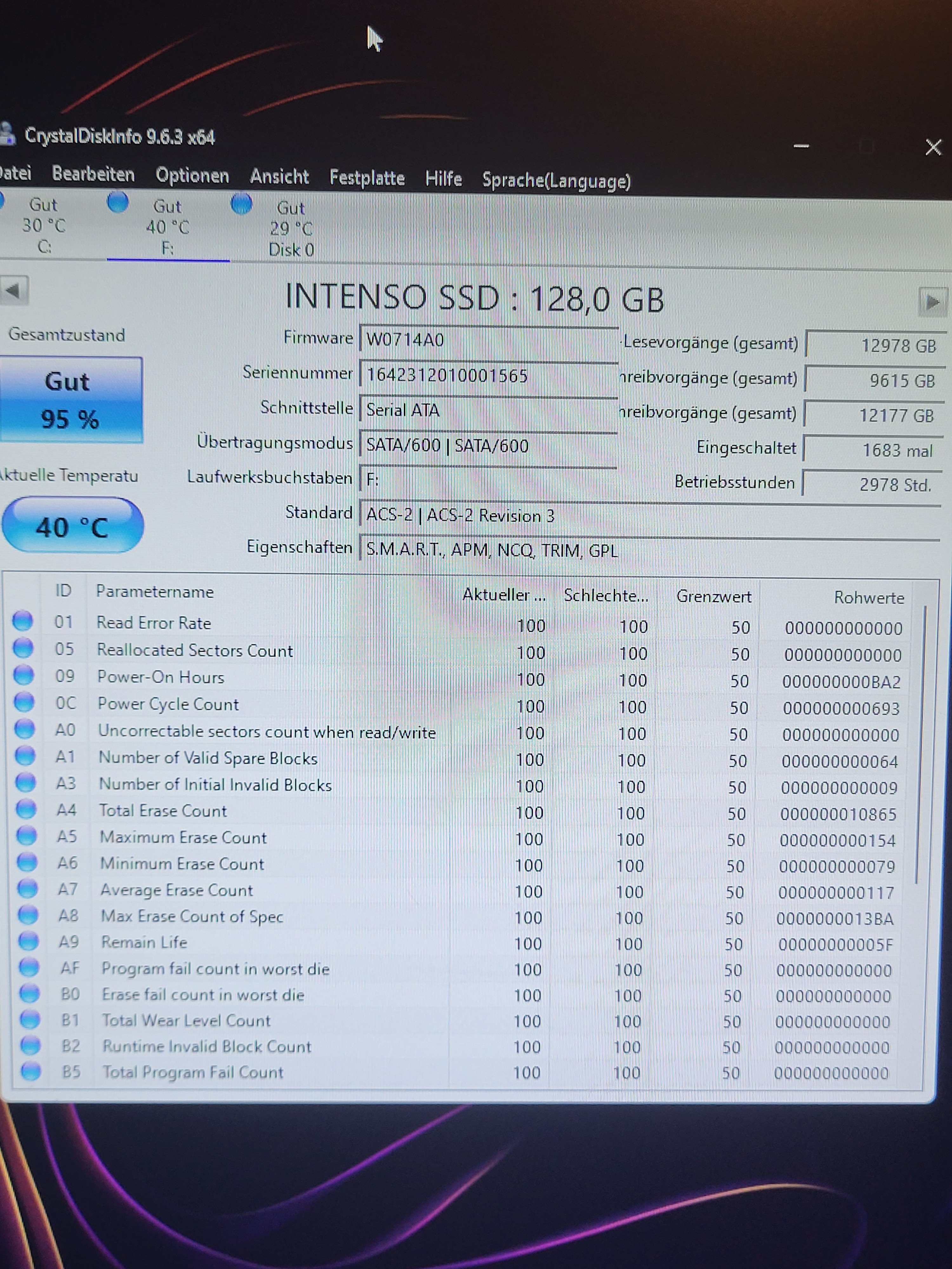 hallo mein problem ist das meine intenso ssd super langsam wird auch wenn nur wenige gb dauf sind dann habe ich mir meine alte samsung ssd von 2014 rausgesuch und die eingebaut in mein pc und die ist schneler als meine intenso ssd mit den gleichen daten drauf. also habe ich windows neuinstaliert aber auf die samsung ssd und da war windows auch viel schneler