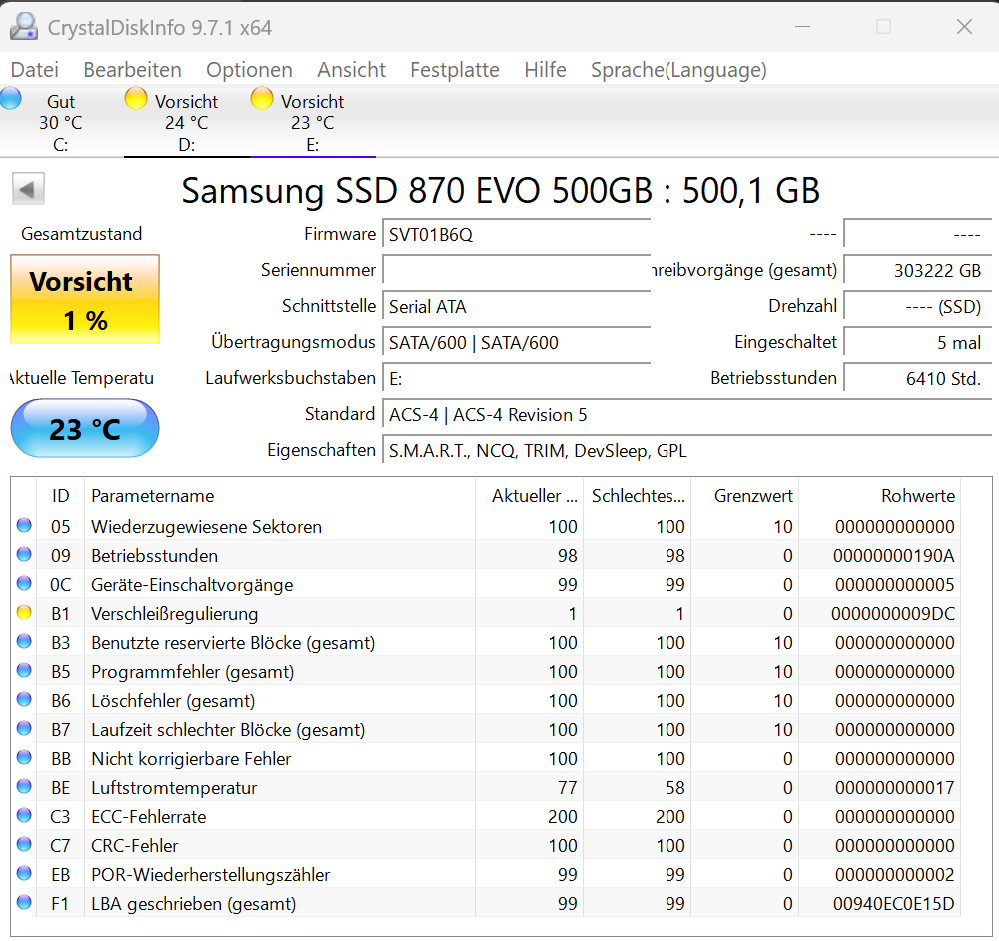 Das offizielle Tool von SKHynix. CrystalDiskInfo hat mir falsche Werte ausgeschmissen und die SSD auch Rot markiert. Mit dem Original Tool keine Probleme, auch nach einem ausführlichen Testlauf nicht.