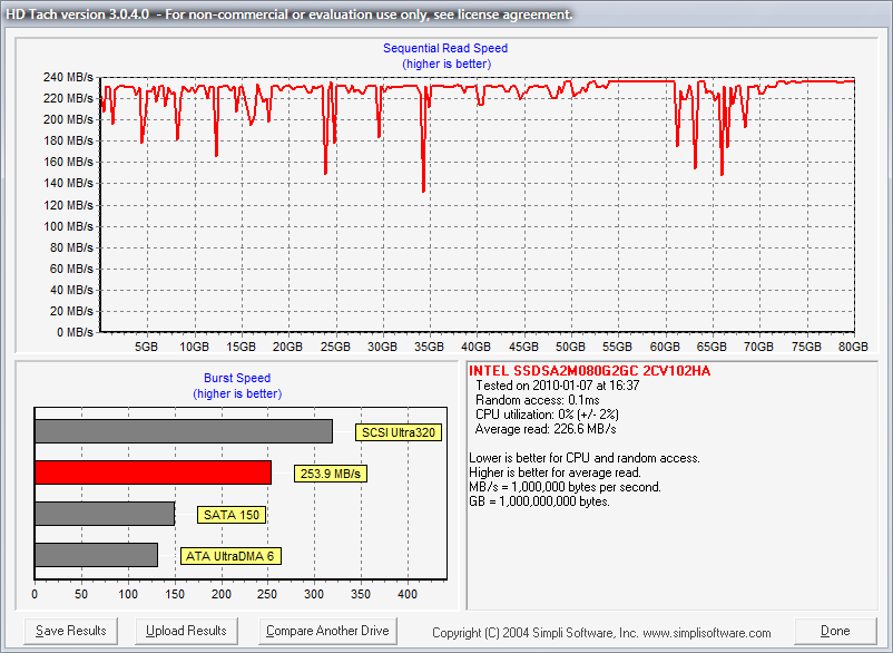 Also bei mir sieht das anders aus in HD Tune. Ich hab dank SATA(N)-1 zwar niedrigere Transferraten, aber bei mir ist die Linie nicht zackig, sondern kerzengerade