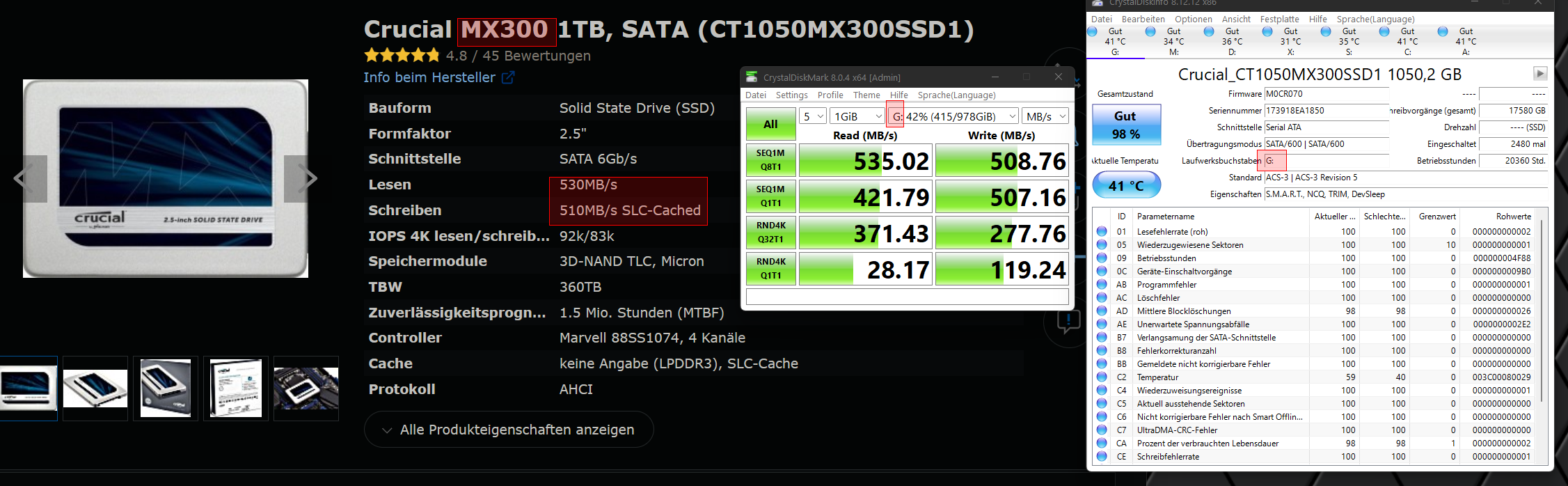 Hallo, habe heut aus Zufall herausgefunden das meine SSDs nur ca 300mb/s schreiben statt 500mb/s wie es eigentlich sein sollte. Habe im Anhang noch die CrystalDiskInfo Ergebnisse angehängt. Wäre gut wenn das gefixt wird.