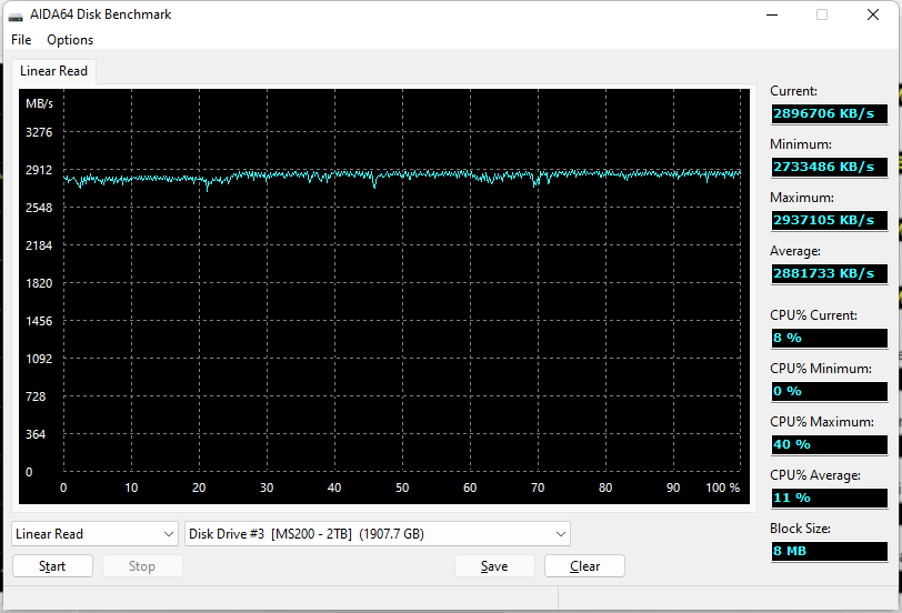 Beim Kopiertest mit dem Win Explorer habe ich vorher gezipte Ordner von einer Samsung 980 pro auf die MS200 kopiert. Meine zip-Datei hatte eine Größe von ~270GB und ich habe den Kopiervorgang wiederholt, bis die MS200 (fast) voll war.