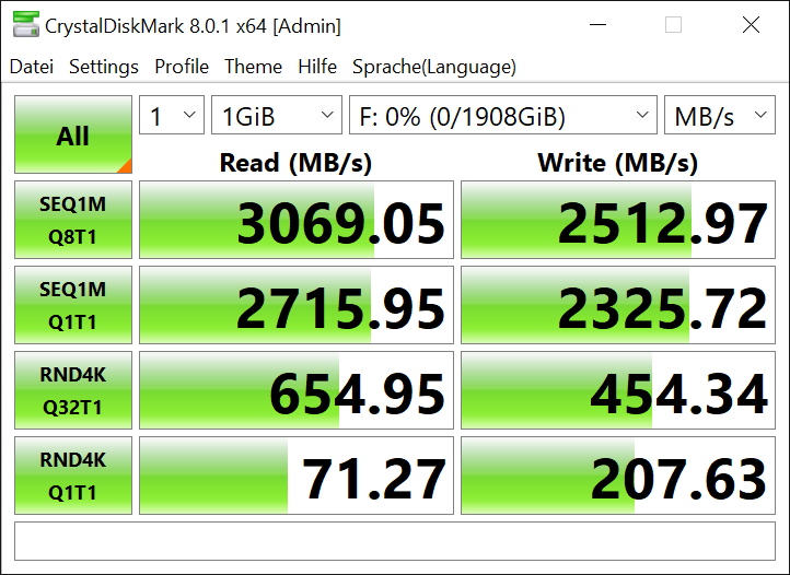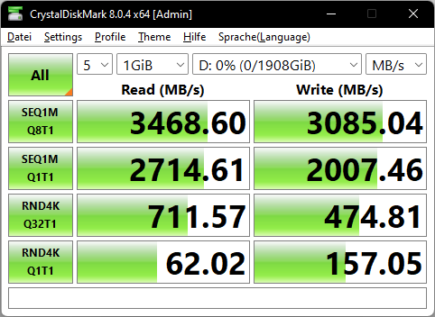 - Am Anfang wurden die Daten mit ~1,9GB/s kopiert (vmtl. SLC-Cache)