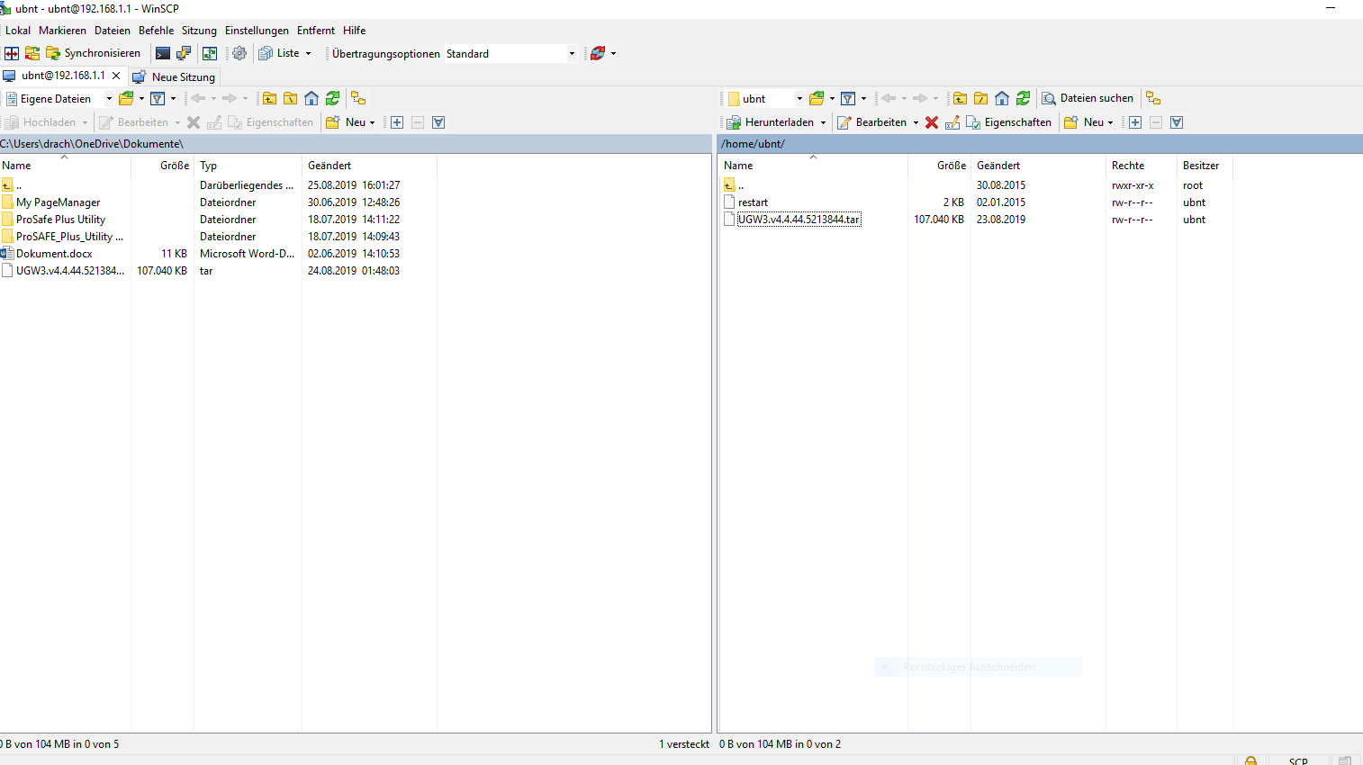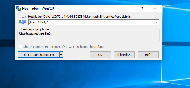 Wenn die USG noch nicht mit dem Internet verbunden ist, können Sie die Datei upgrade.tar auf Ihr lokales System herunterladen und dann mit SCP in die USG kopieren.