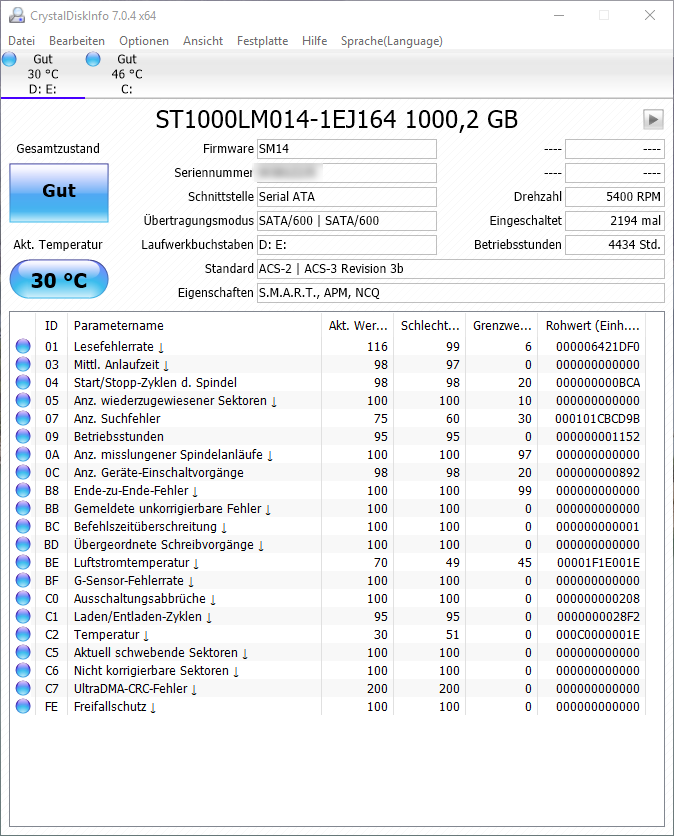 Ich habe hier mal meine SMART Werte gescreenshotet, aber hab iwie keine wirklichen Vergleichswerte was jetzt gut und was schlecht ist. Datensicherung ist extern auf ner 3,5" Platte gemacht. Die passt aber natürlich nicht ins Notebook zum Testen obs wirklich an der Platte liegt. Und einfach so ne neu 2,5" HDD kaufen ist mir zu heikel falls es doch nicht dran liegt.