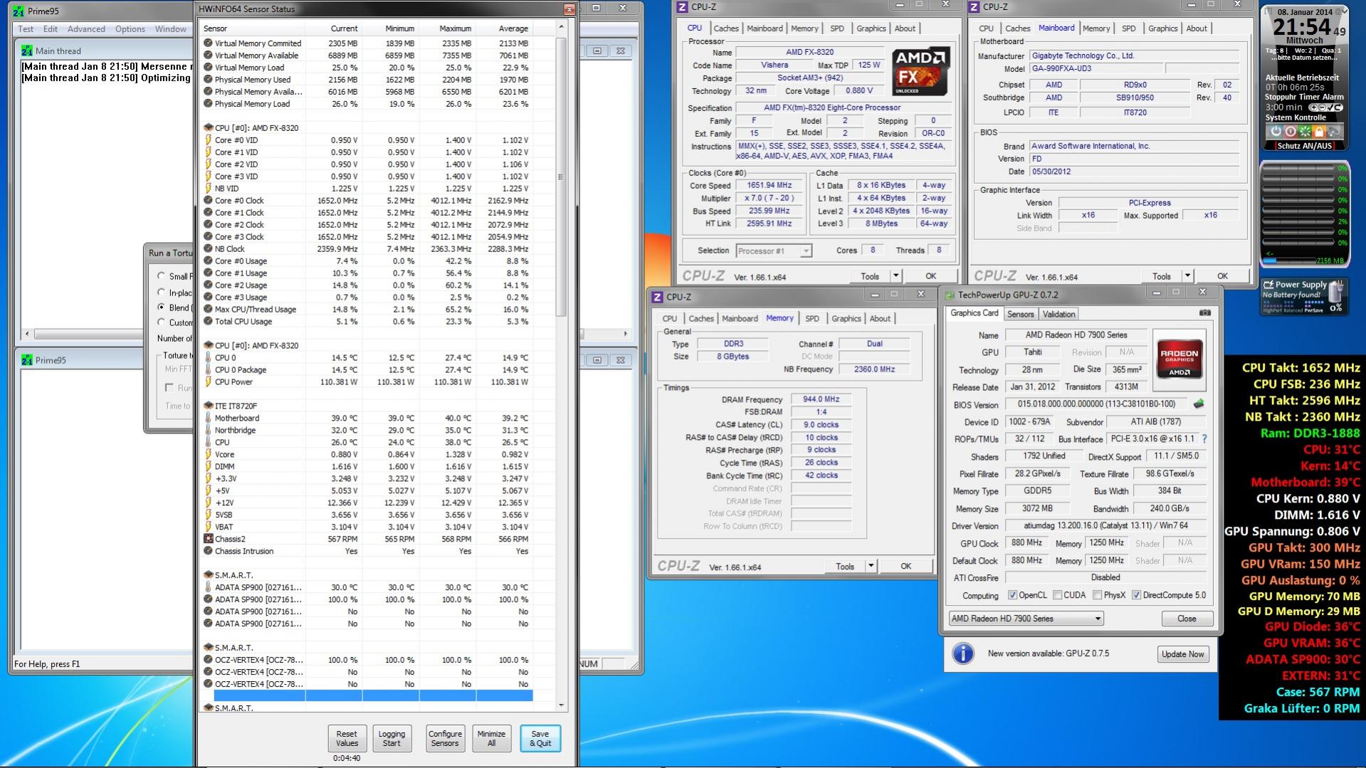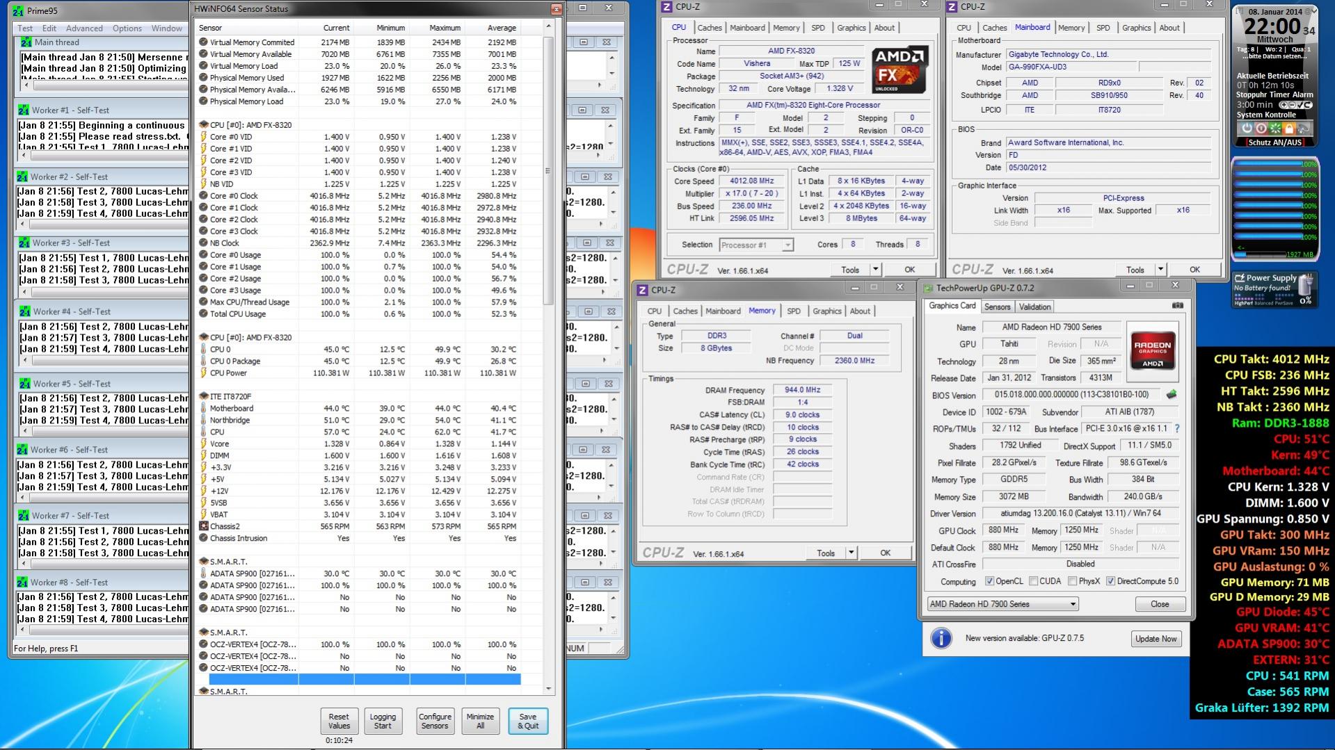 Im laufenden etrieb wird Windows sofort instabil, wenn ich z.B. etwas an der CPU Frequenz oder Spannung verändere. Stelle ich im laufenden Betrieb den CPU auf 15*200 (3000mhz) bei 1,2v, stürtzt sofort Windows Aero ab, die Performance nimmt ab, und der Explorer macht Probleme (Taskleiste reagiert z.B. nicht). All das, obwohl der PC bei gleichen Einstellungen im Bios eingestellt keine Probleme macht. Stelle ich die Werte wieder zurück auf Standardeinstellungen, bleiben die Probleme ebenfalls bestehen....