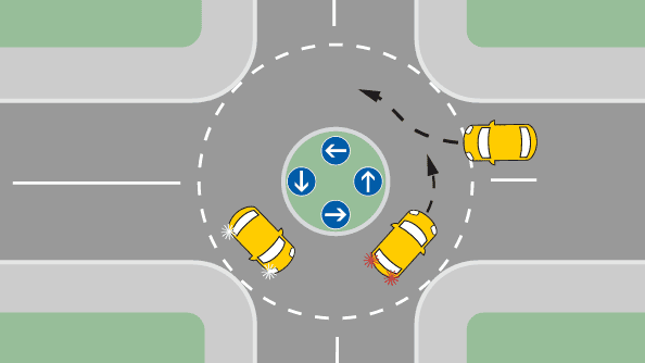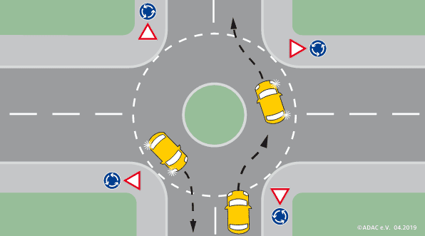 Wer darf zuerst in den Kreisverkehr einfahren, wenn beide Fahrzeuge noch vor der Haltelinie