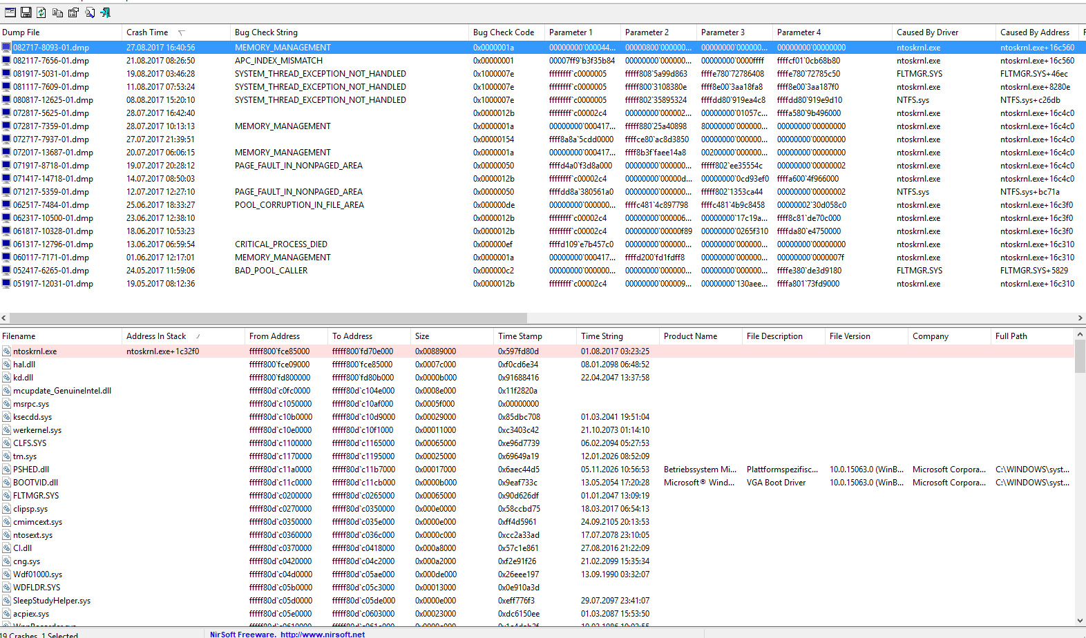 - Ich habe nun selbst einmal den Minidump-Ordner ausgelesen. Ja, hierbei wurde auch "Memory Management" angezeigt, allerdings nur 4/20 Mal. Als Fehlerquelle wurde jedes mal ntoskernl.exe angegeben. Ab und zu wird diese noch durch NTFS.sys oder FLTMGR.SYS ergänzt.