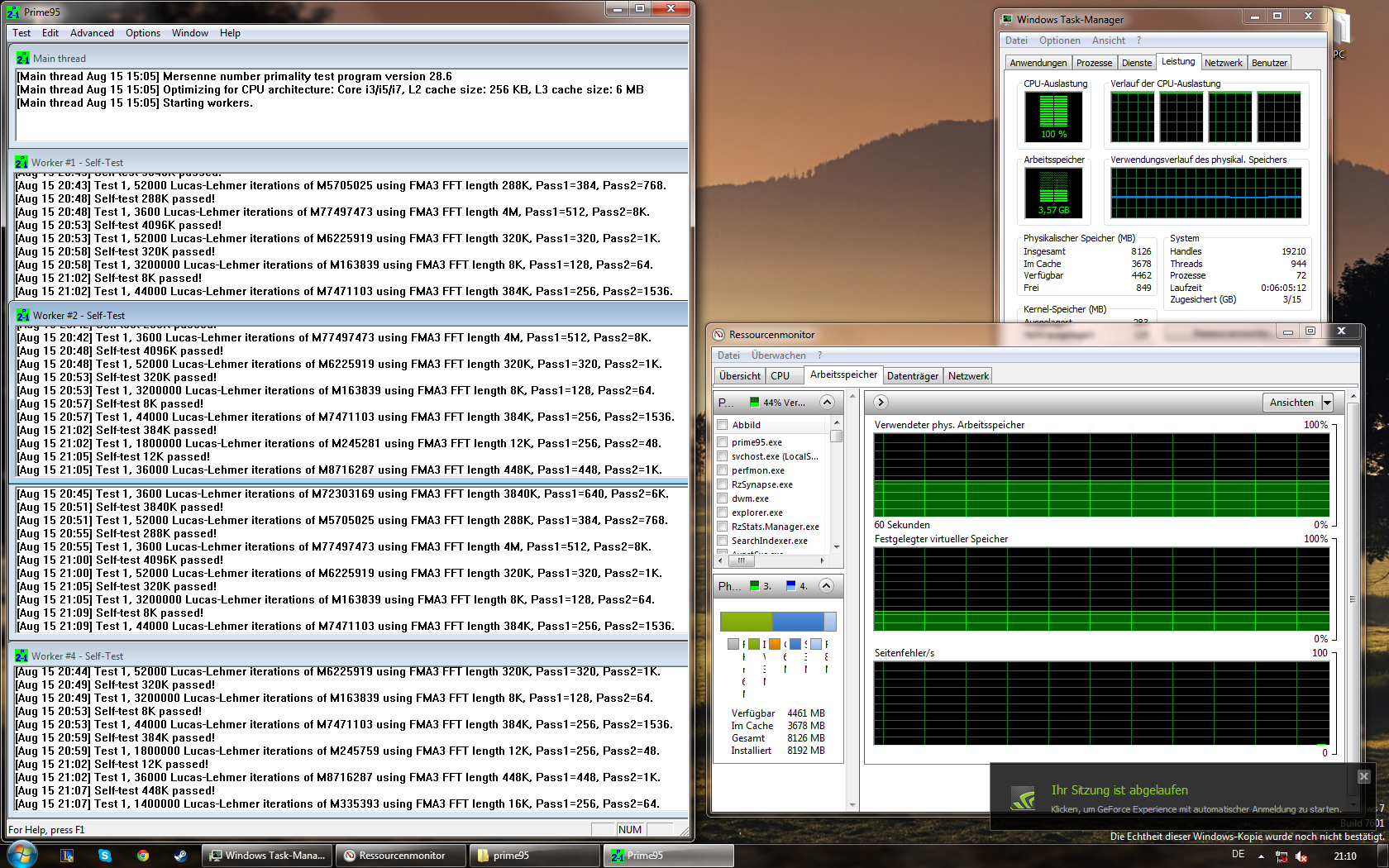 Hades777 schrieb:Und eine Verständnisfrage: Ich will ja meinen Arbeitsspeicher überprüfen. Warum sind dann die vier Kerne meines CPU beim Prime95 Test zu 100% ausgelastet?