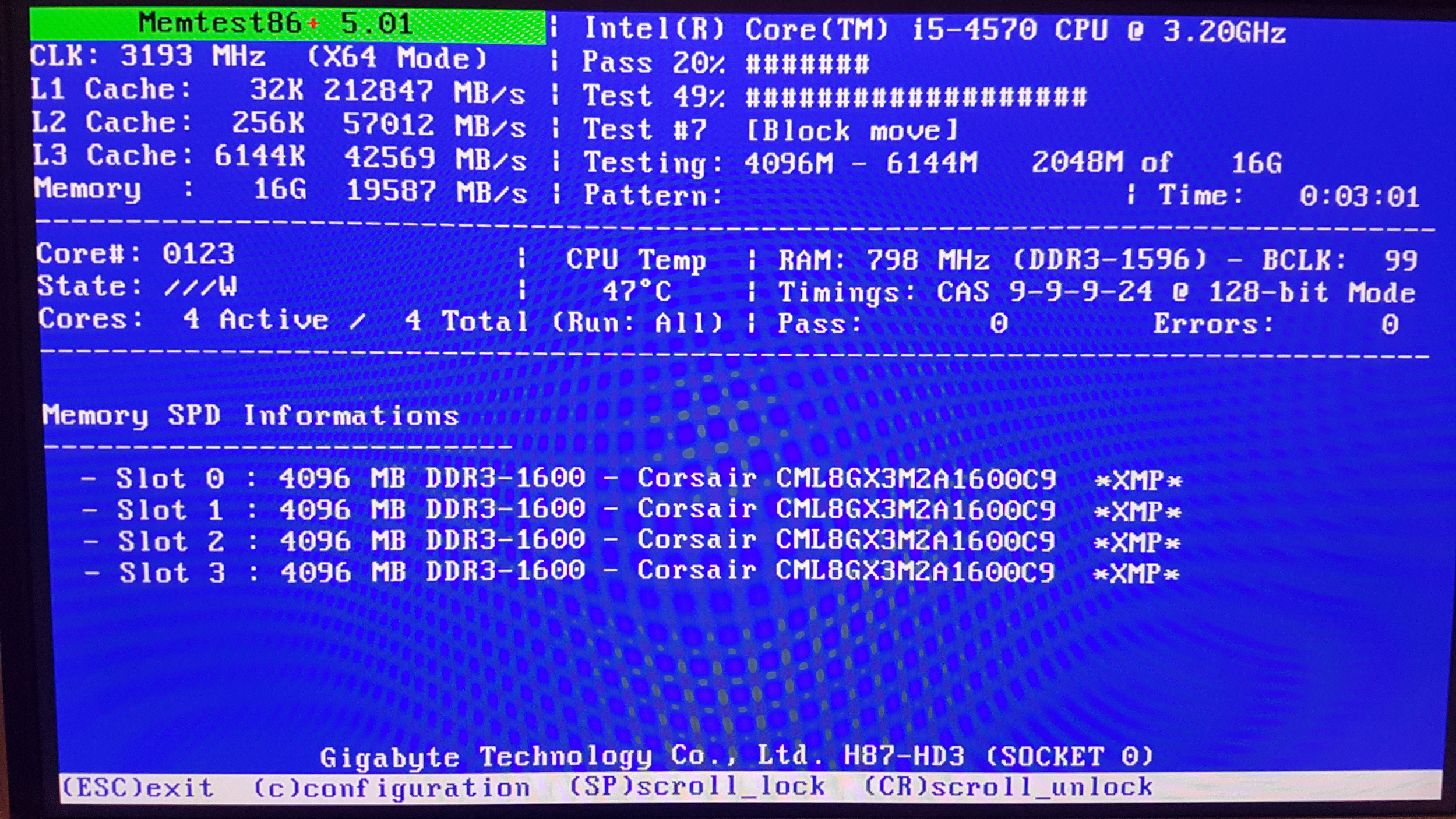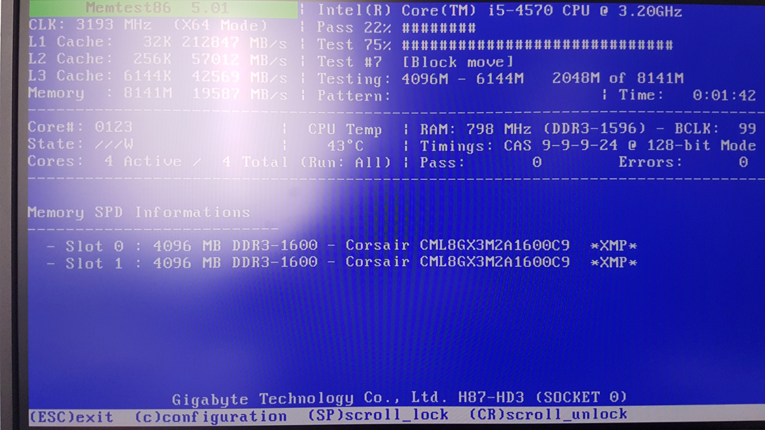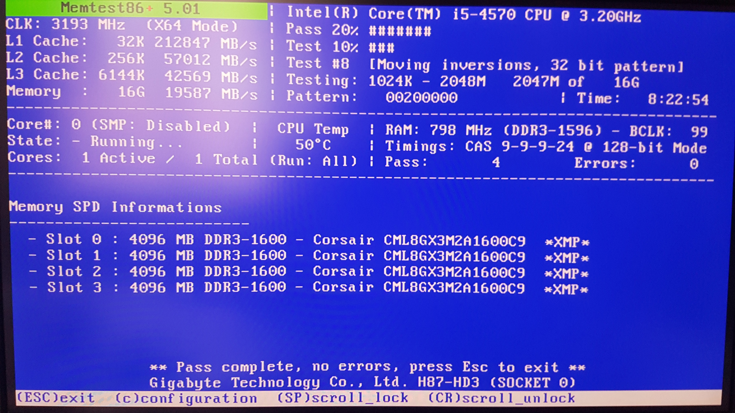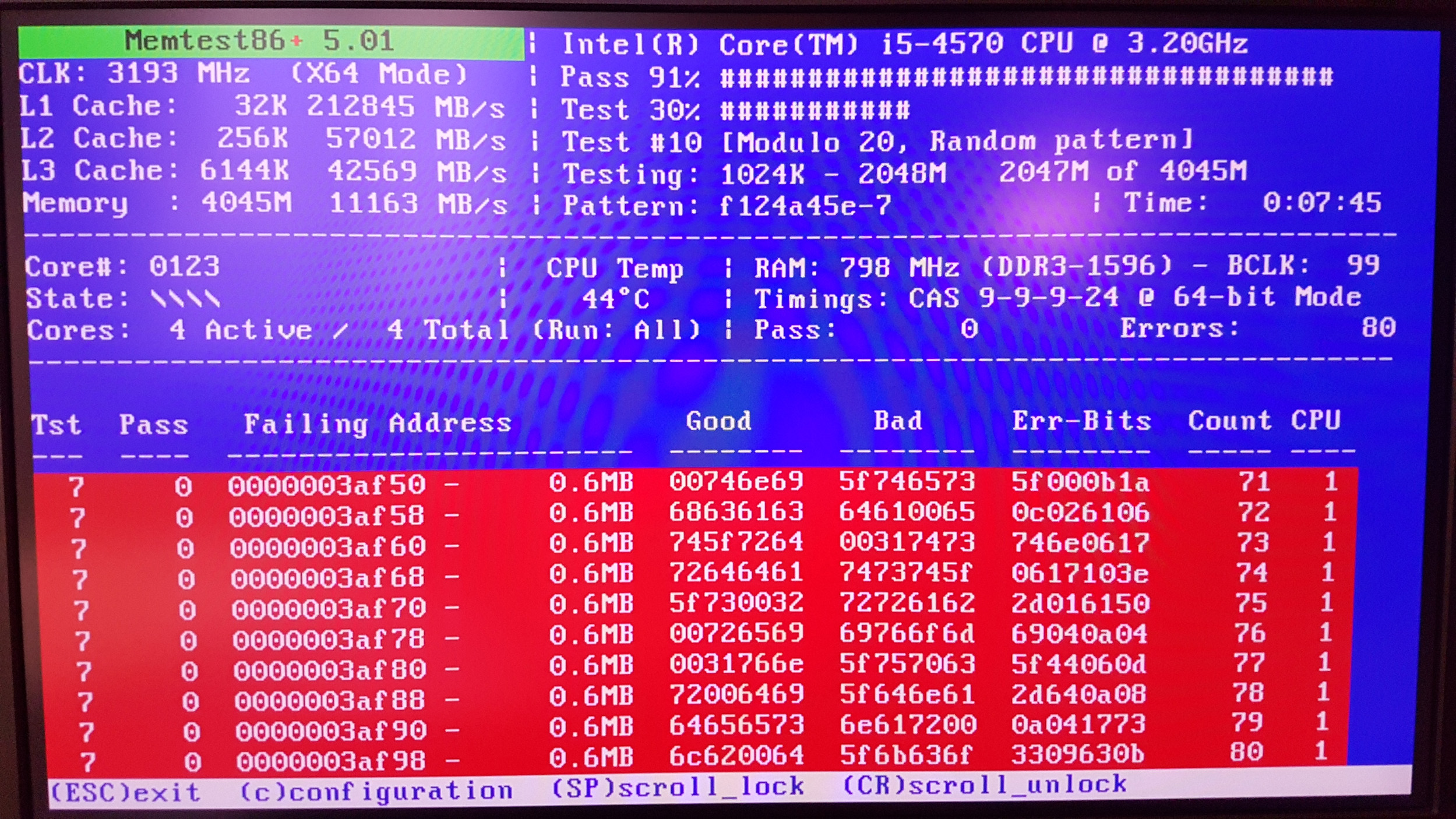 Zum Speichertest: 4 Stunden sind etwas knapp, eigentlich sollte ein Durchlauf reichen, zur Sicherheit kann man aber 3 laufen lassen. Hier einfach über Nacht rennen lassen. Memtest86+
