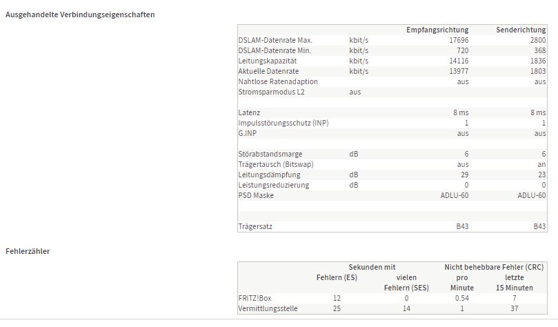 die Fehler kommen durch die Störung, da die Leitung am Limit in dem Fall läuft und stärker gestört wird. Von nen einfachen Kabelproblem am APL / TAE würde ich hier auch hier nicht ausgehen, wenn nicht gerade ein Starkstromkabel an Leitung vorbeiläuft.